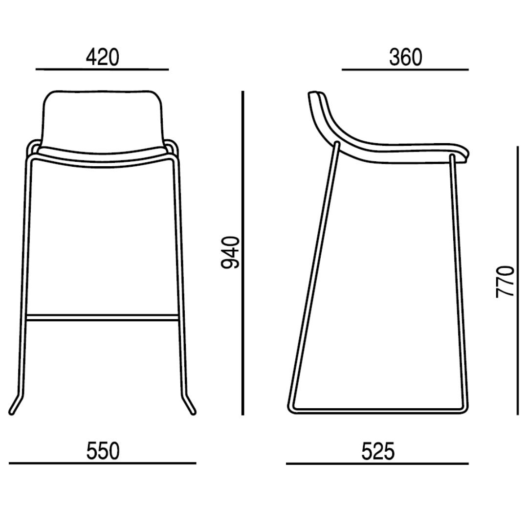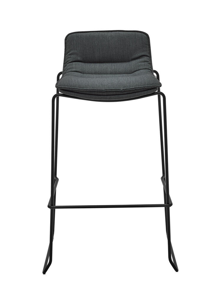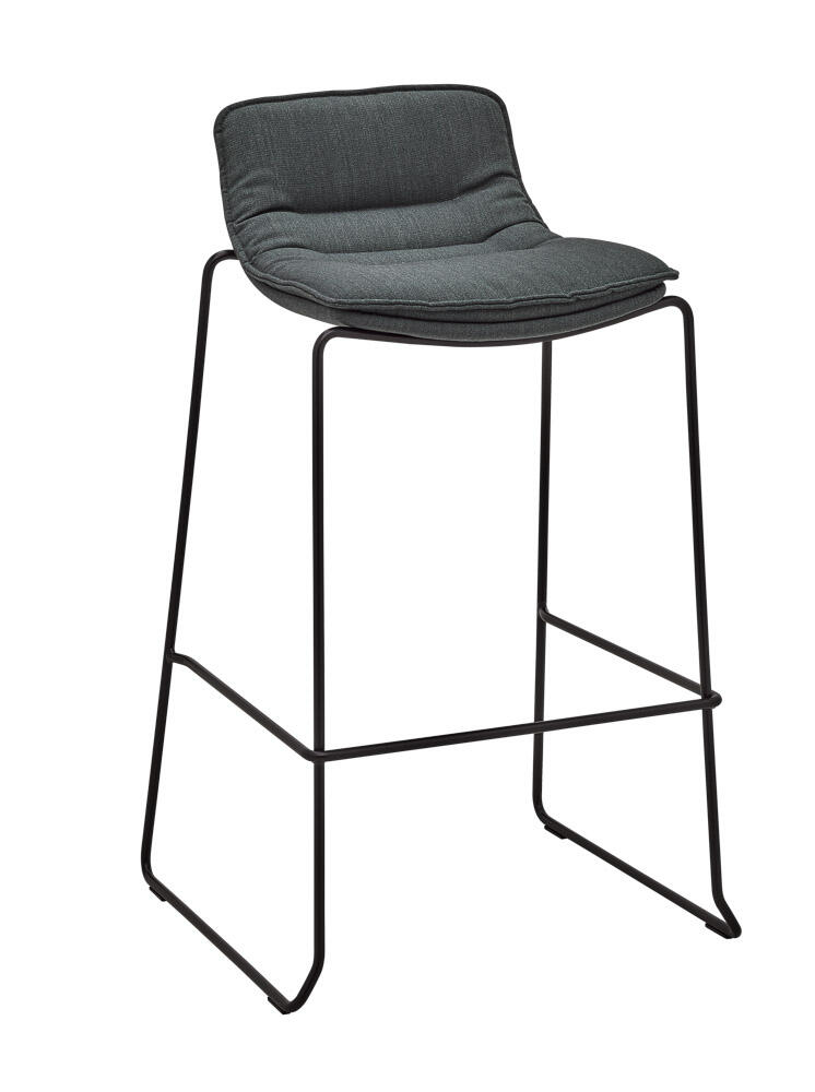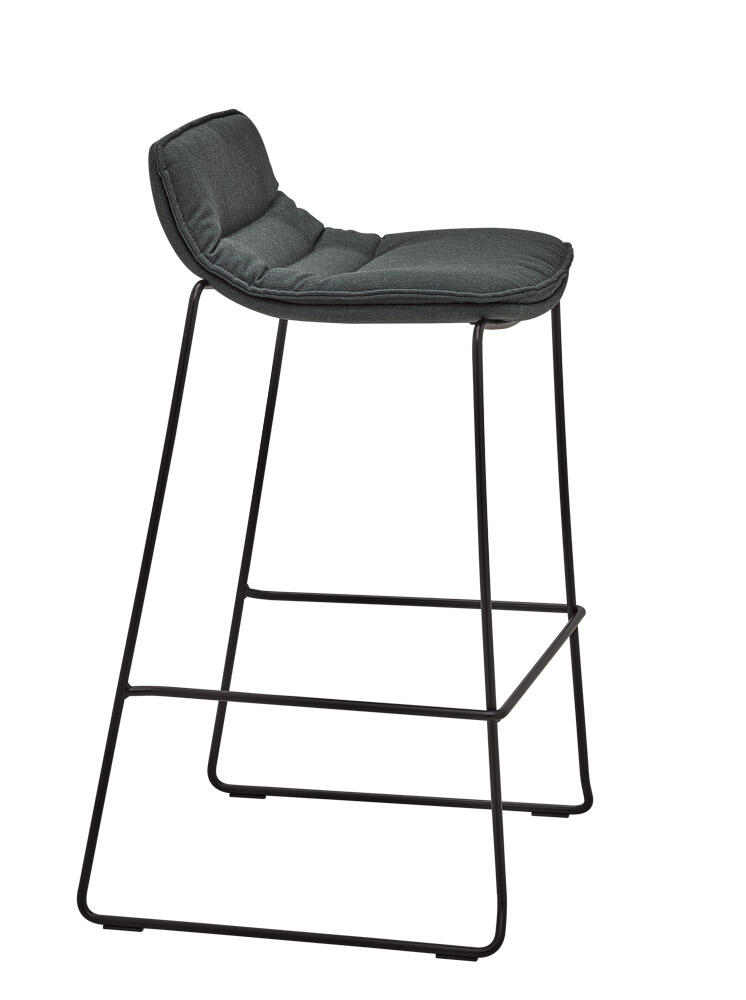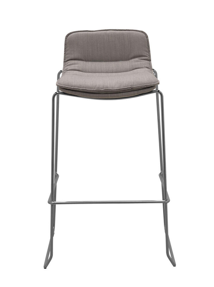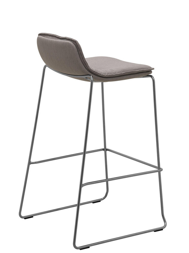 Celočalouněná barová židle na drátěné podnoži. Nízká zádová opěra nabízí dostatečnou oporu a komfort i při delším sezení. Sendvičová skořepina nabízí možnost dvoubarevného čalounění.