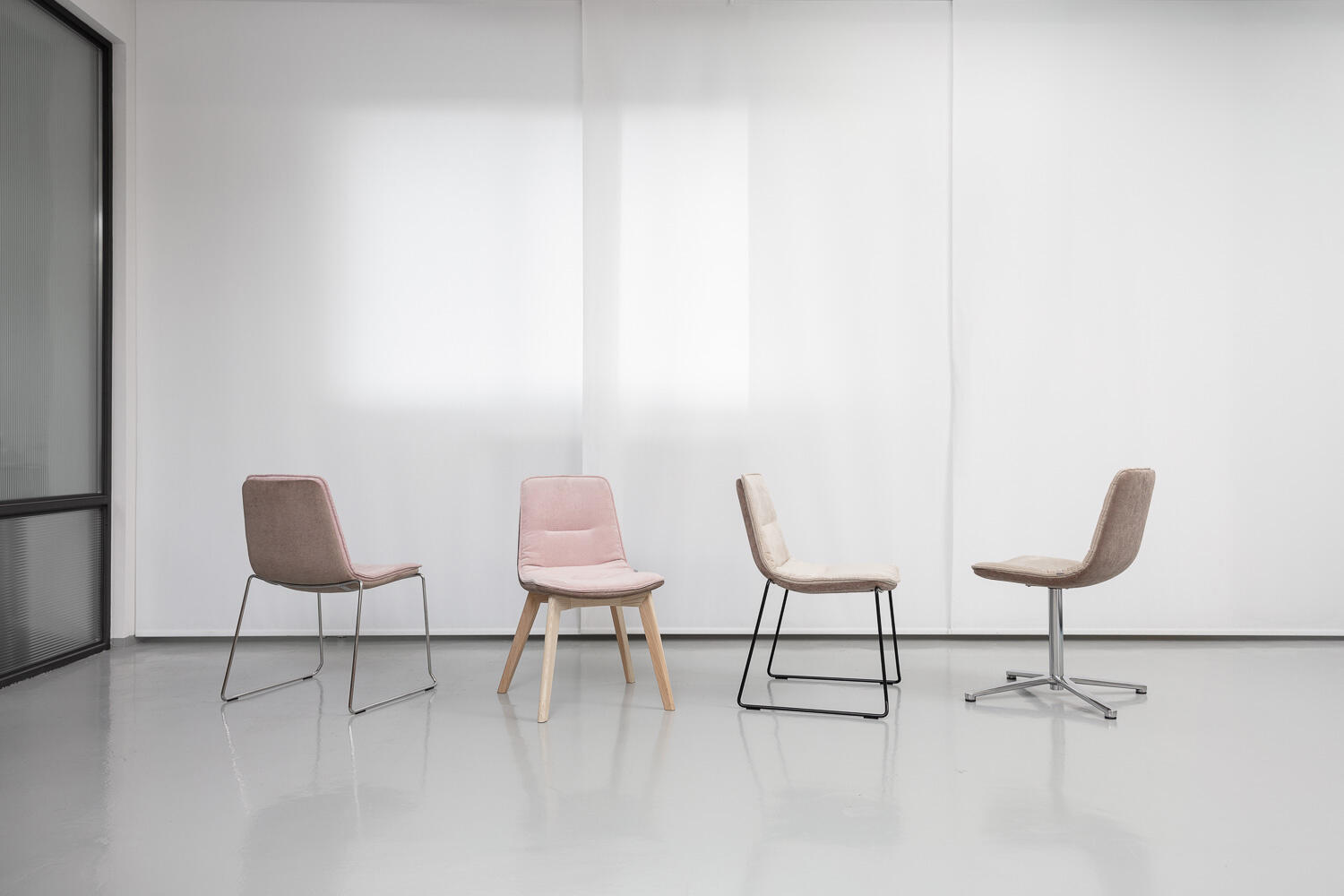 ED 4211.25 verfügt über ein Holzgestell aus massiver Eiche oder Esche. Metall-Fußstütze in Schwarz oder Chrom erhältlich.