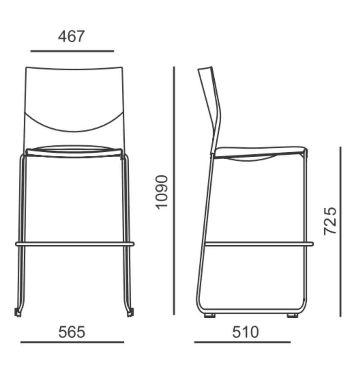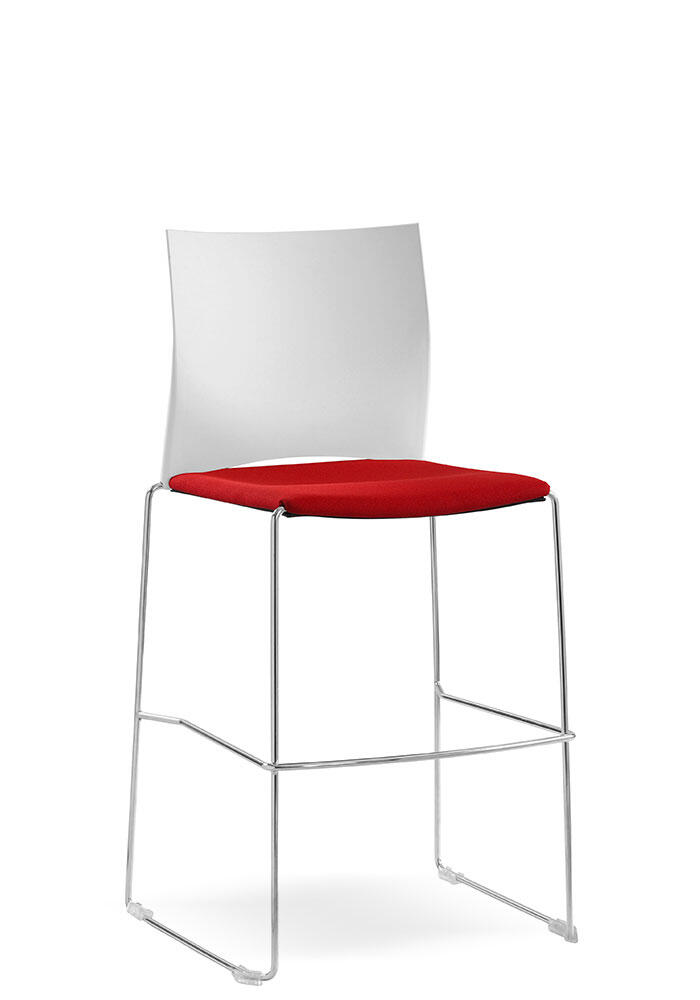 Komplett aus Kunststoff (PP) gefertigter Barhocker mit gepolsterter Sitzfläche auf einem dünnen, hochfesten Rahmen. Modernes und luftiges Design bietet qualitatives und bequemes Sitzen. Geeignet für öffentliche Bereiche mit multifunktionaler Nutzung. Der Stuhl erfüllt hohe Anforderungen an Stapelbarkeit. Standard-Kunststofffarben – schwarz und weiß. Weitere Kunststofffarben – blau, rot, grün, sand und grau.