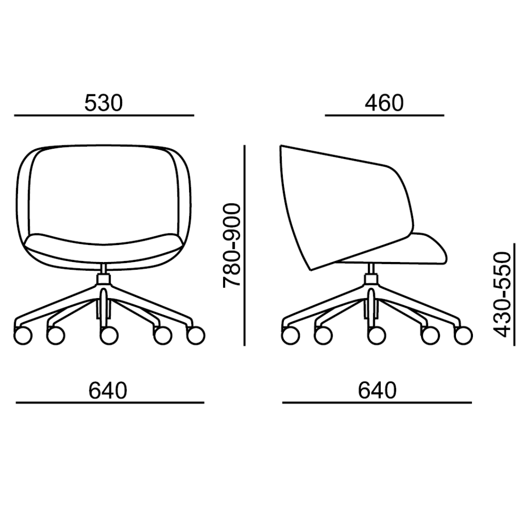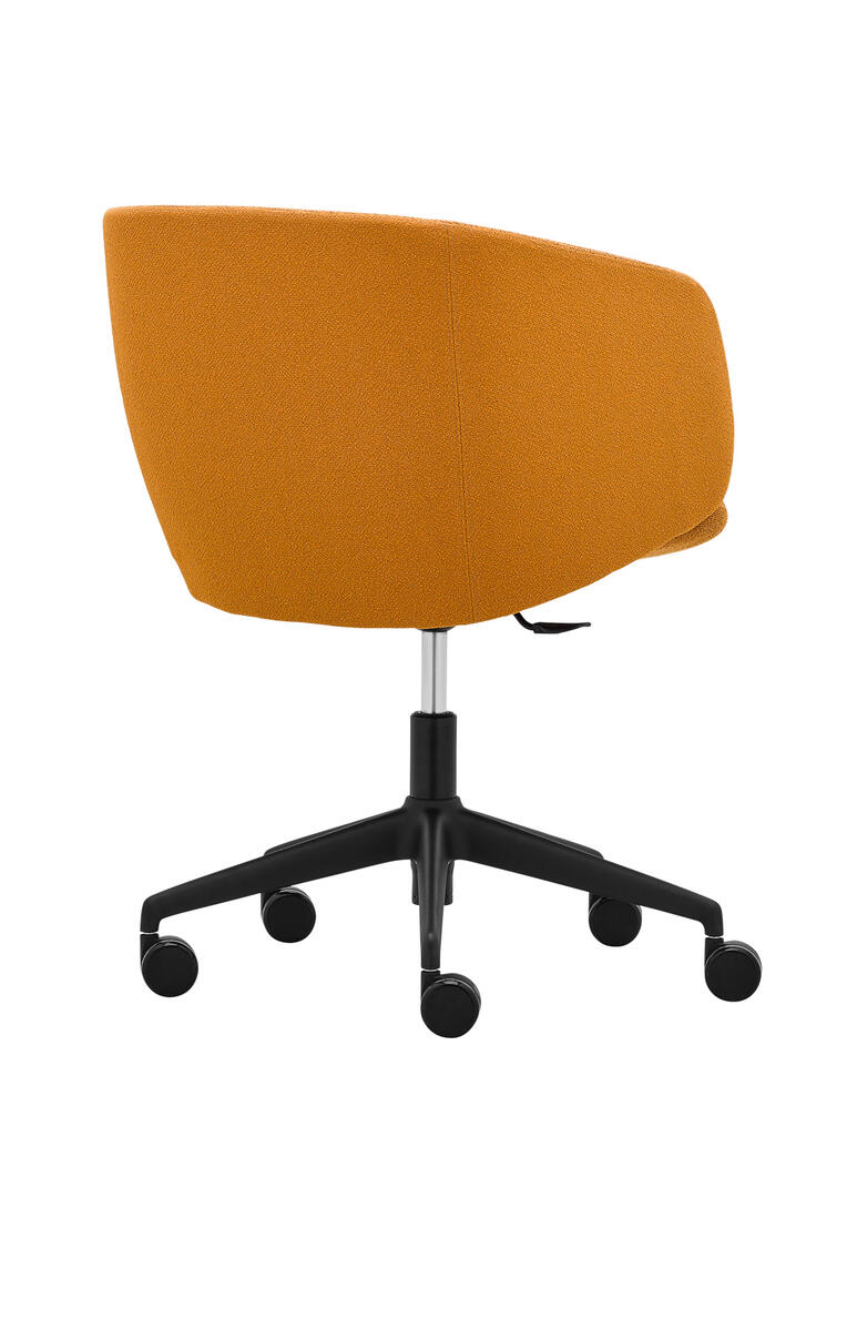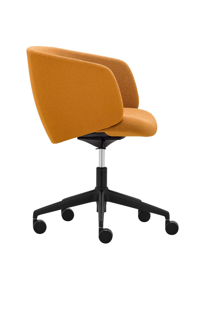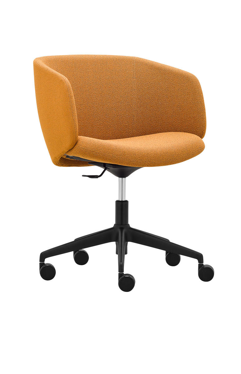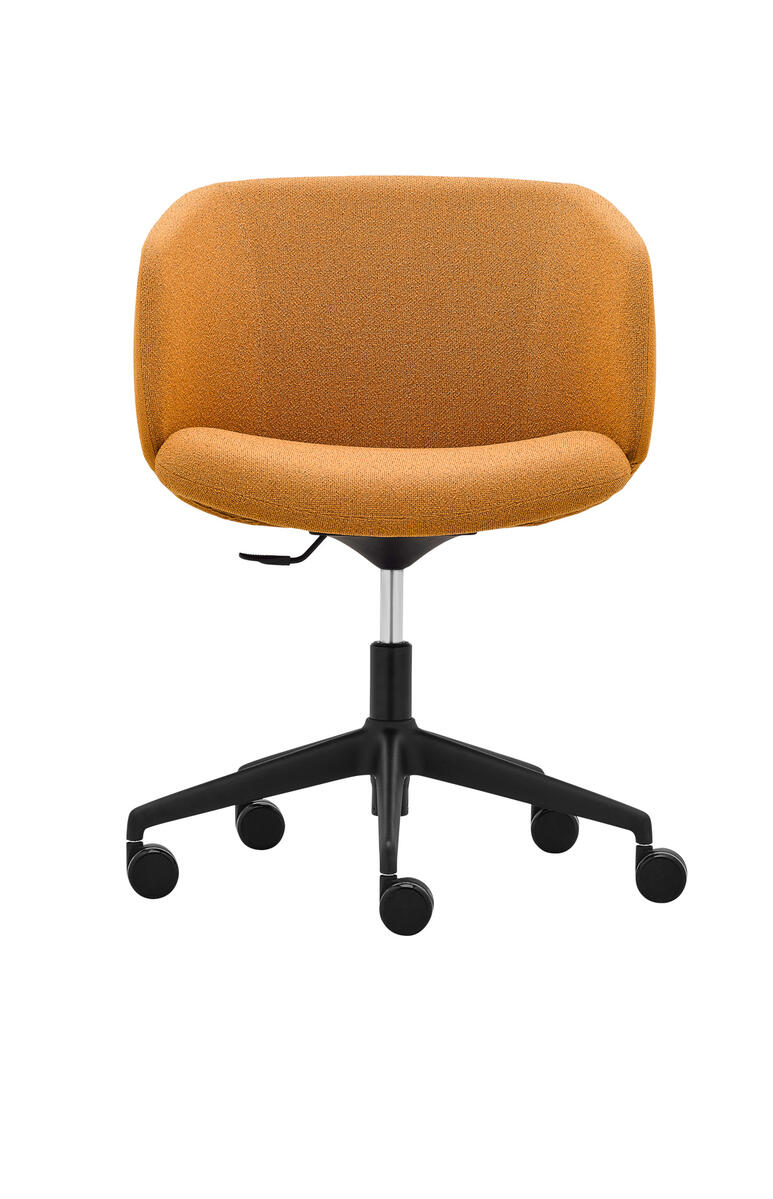 Das Modell WX 880.15 ist auf einem fünfarmigen Kunststoff-Fußkreuz mit Rollen. Der Sessel ist mit einer Höhenverstellung ausgestattet.