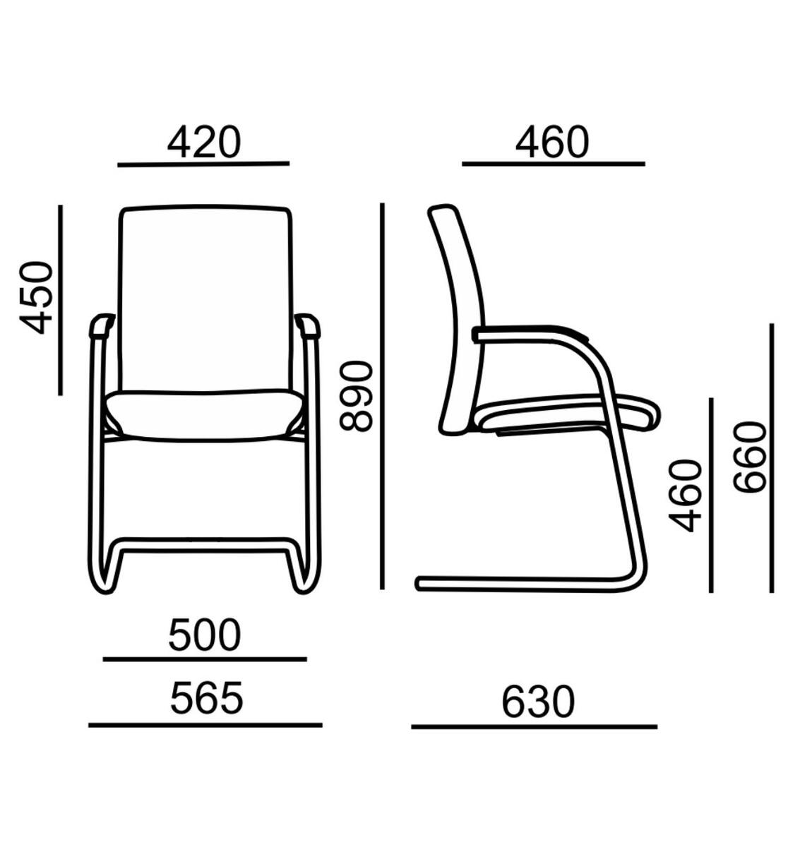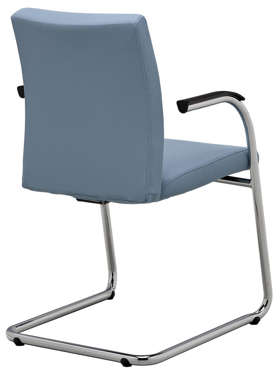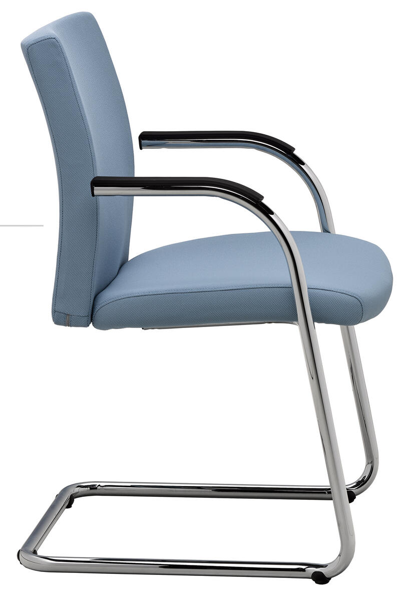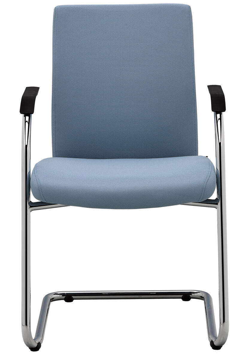 Vollgepolsterter Freischwinger-Konferenzstuhl mit mittlerer Rückenlehne.