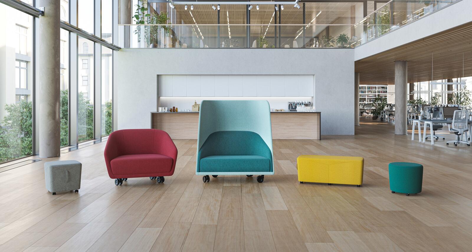 Mini-sofa Organix on castors provides flexibility in placement and arrangement of your office space. The sofa can be combined with other products on castors from the Agility collection helping you to create perfect environment for different work situations and requirements.