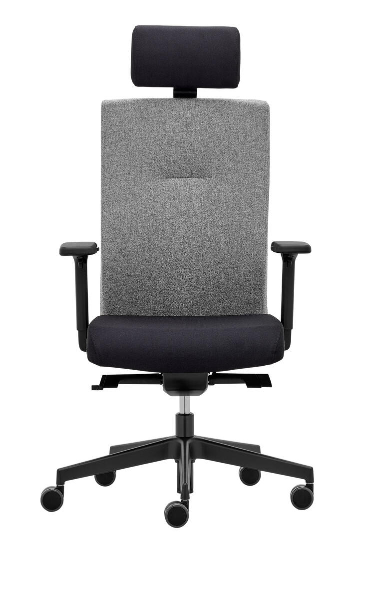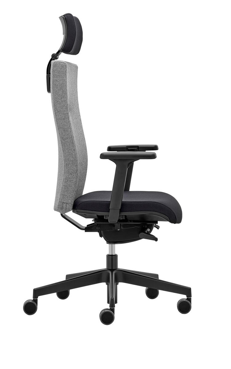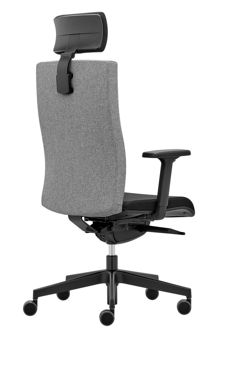 Office chair with height-adjustable fully-upholstered backrest. The chair is equipped with synchronous ST1 mechanism providing dynamic sitting. Intuitive use, maintenance, and service.