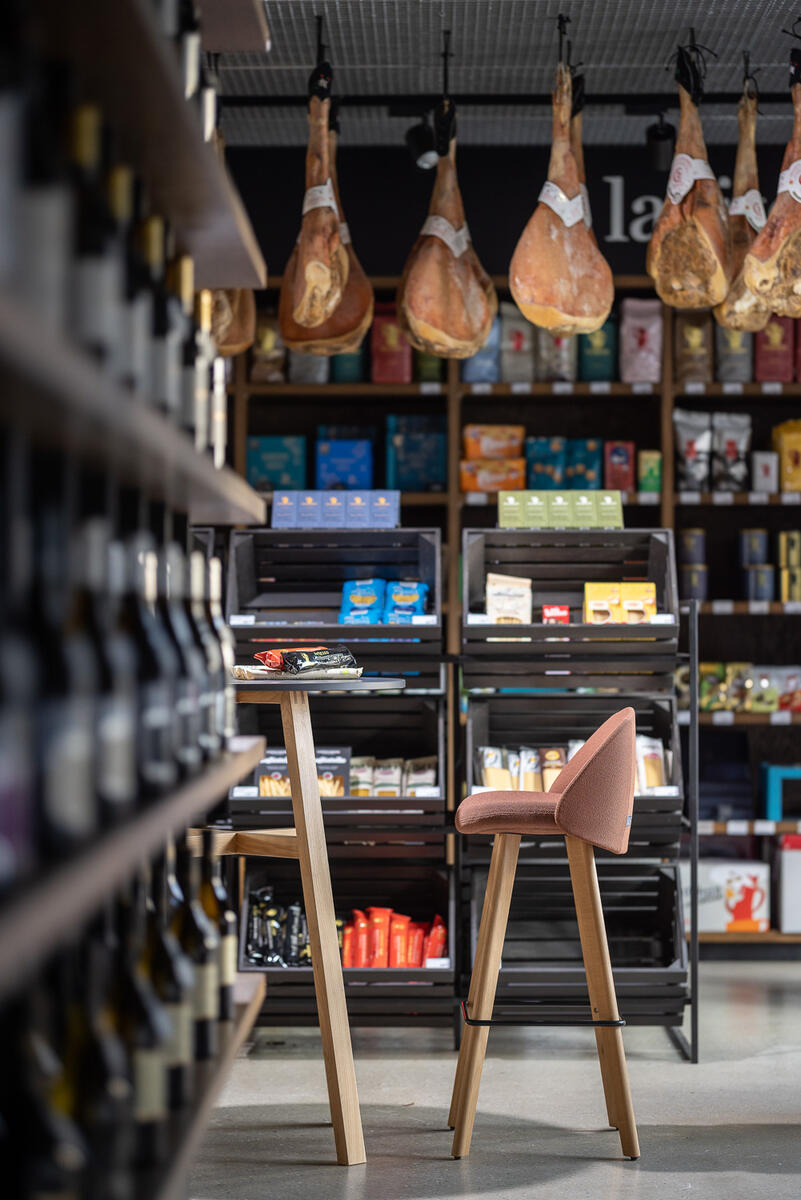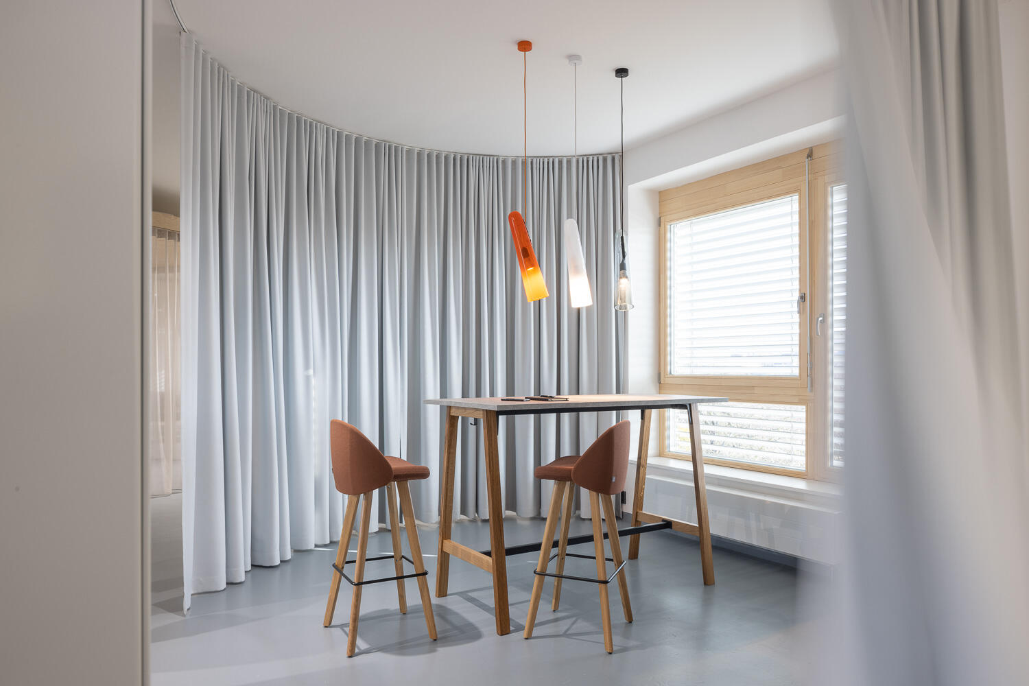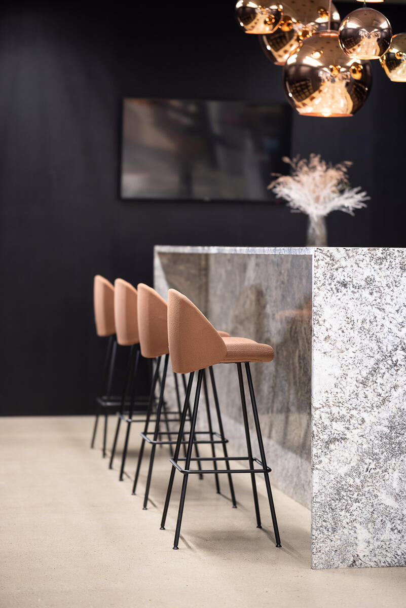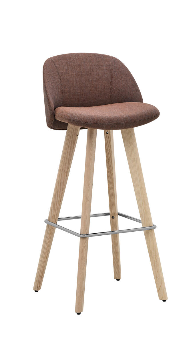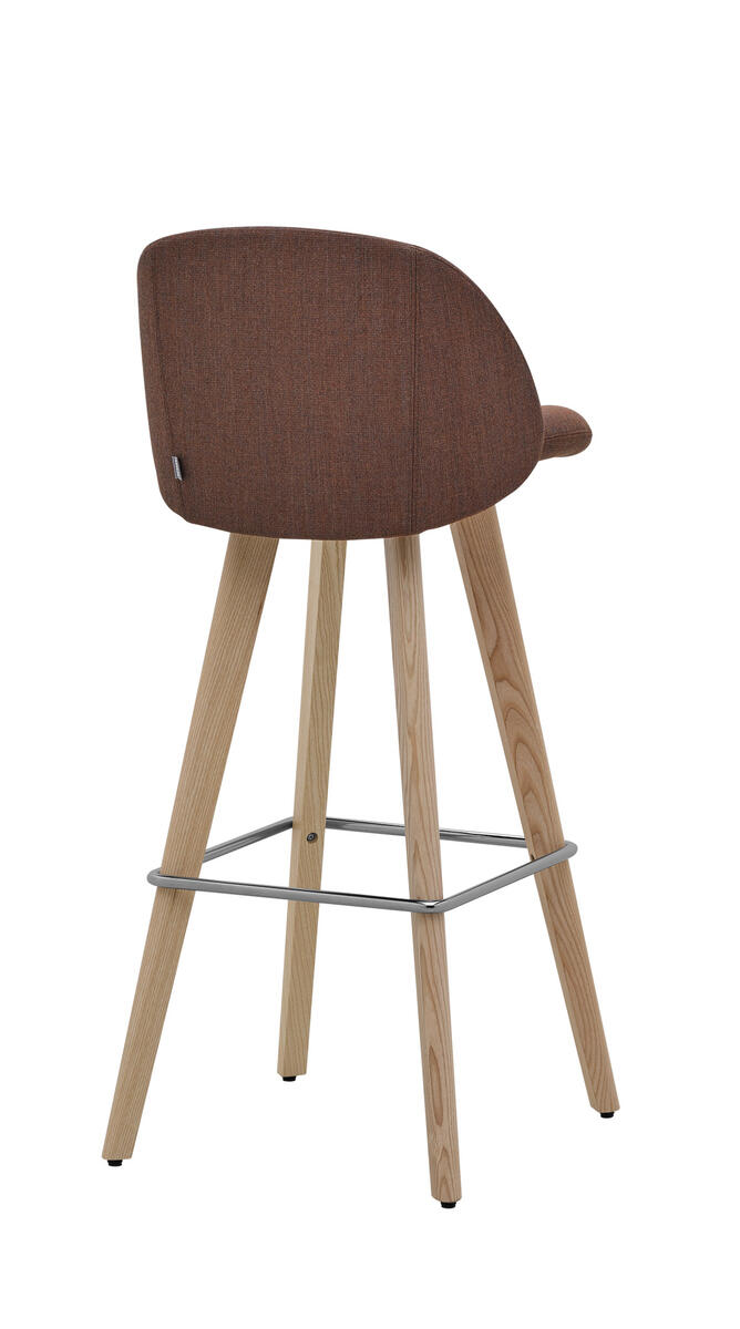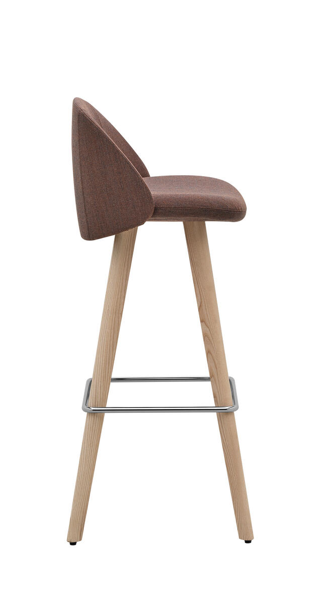 Le modèle WX 882.24 est un tabouret de bar entièrement rembourré sur une base en bois massif de chêne ou de frêne. La finition de repose-pieds en métal est disponible en peinture noire poudrée ou en chrome.