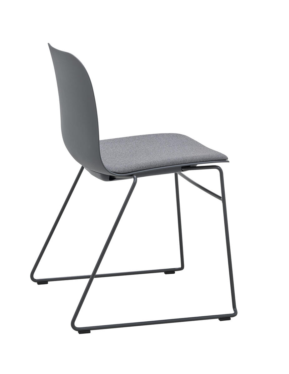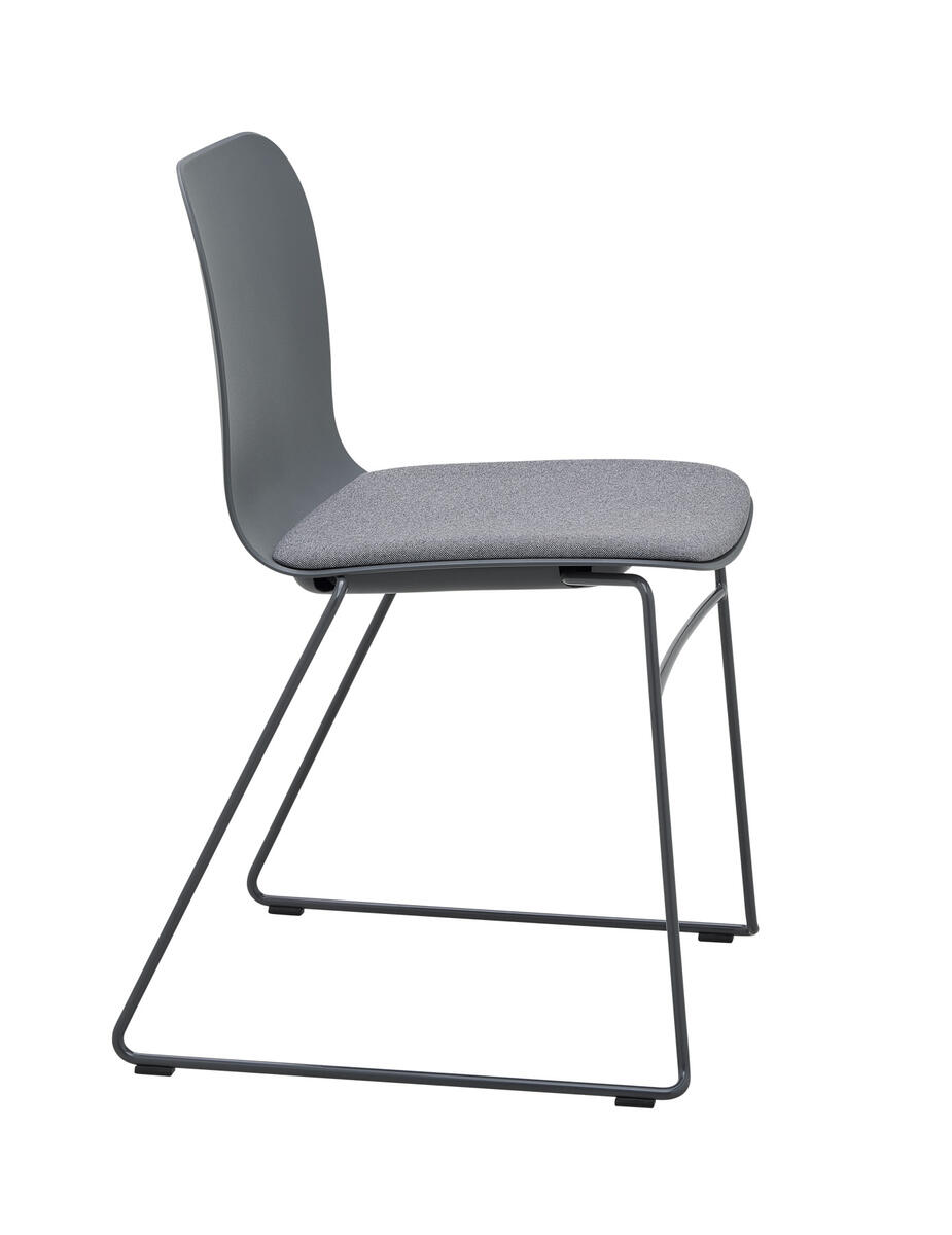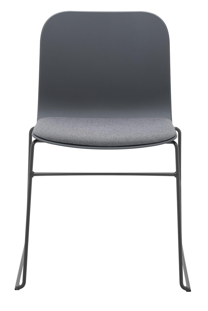 Chaise polyvalente empilable, coque en polypropylène avec le segment de l'assise rembourrée, structure en tige.