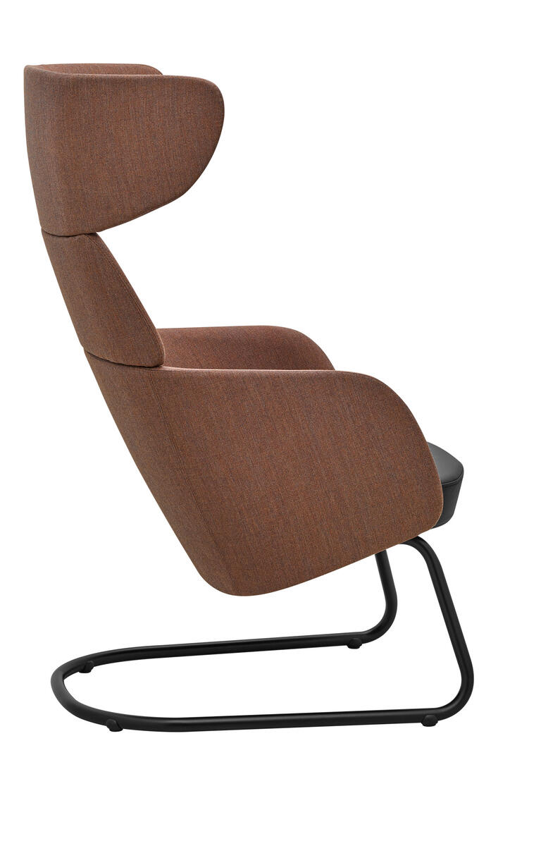 Fauteuil WX 886.13 est monté sur un piètement en porte-à-faux noir. D'autres couleurs (selon le nuancier RAL) sont disponibles sur demande. Le fauteuil peut être équipé d'un coussin lombaire WX 280 pour améliorer le confort d'assise.