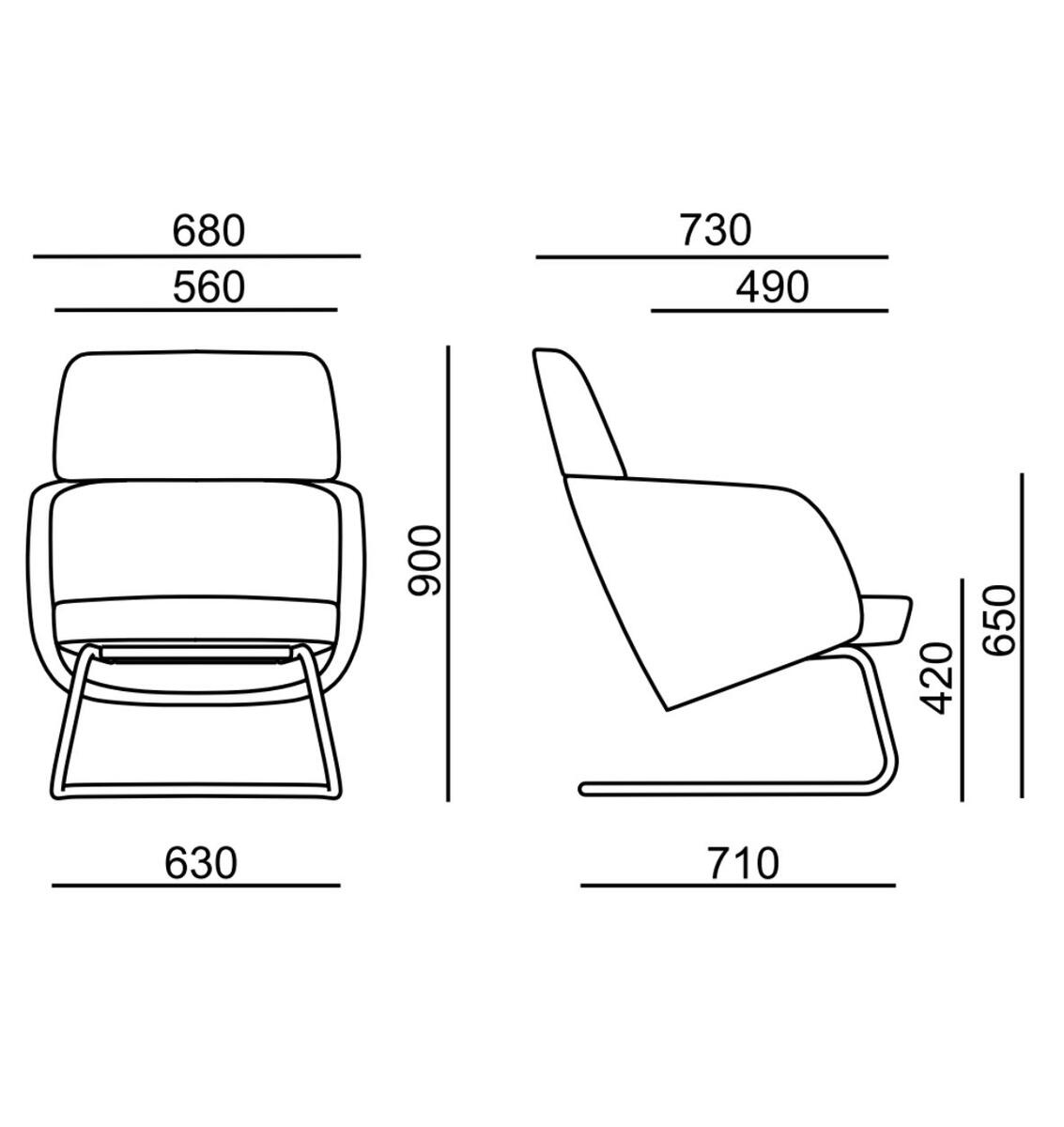 Fauteuil WX 885.13 est monté sur un piètement en porte-à-faux noir. D'autres couleurs (selon le nuancier RAL) sont disponibles sur demande. Le fauteuil peut être équipé d'un coussin lombaire WX 280 pour améliorer le confort d'assise.