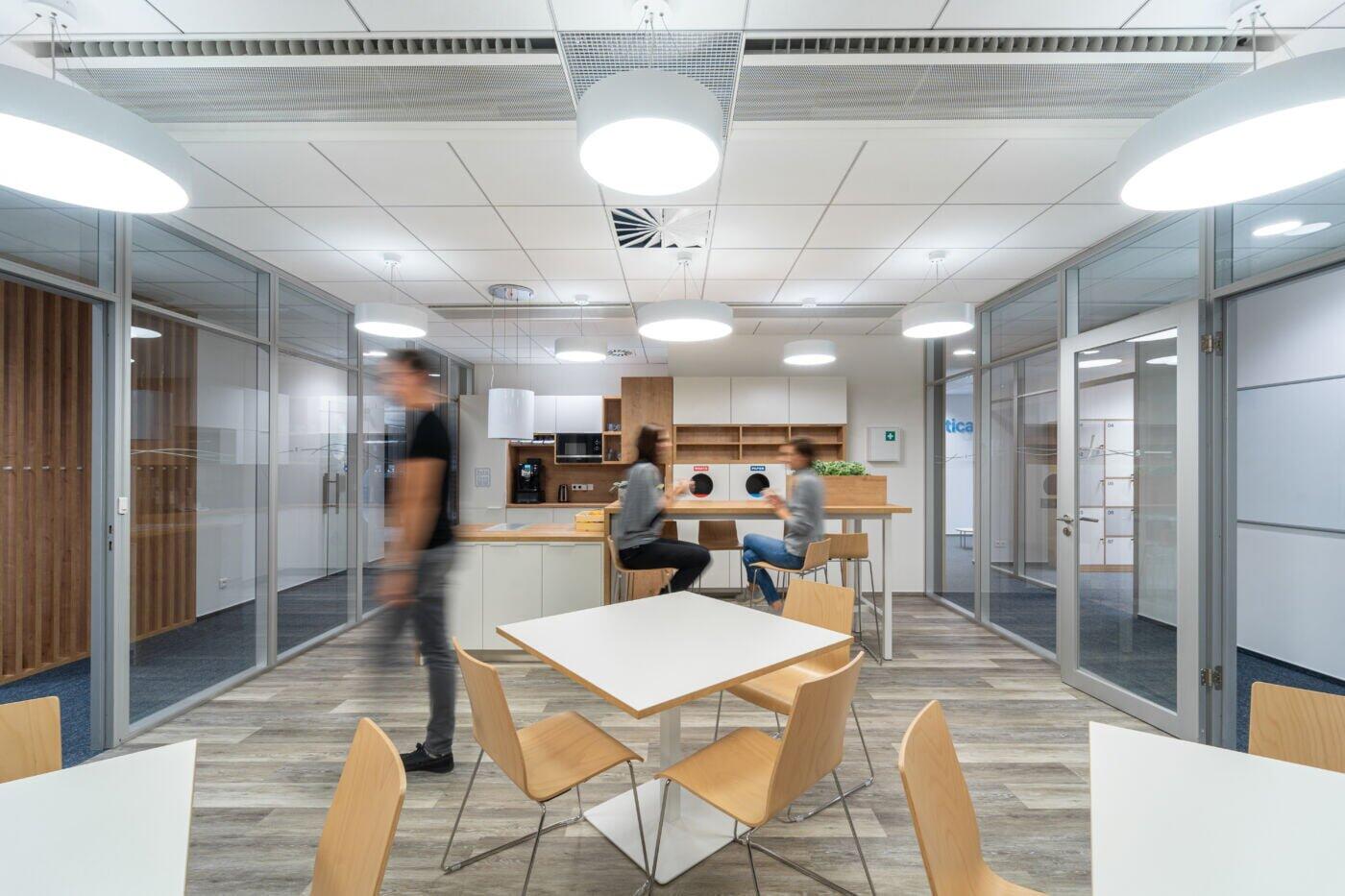 L'intérieur de bureaux à Brno appartenant à la société Safetica, active dans le domaine de la protection des données logicielles, se distingue par l'environnement pratique et inspirant. L'approche individuelle vers chaque salle nouvellement équipée, de la salle de réception et de conférence à la cuisine et la zone de relaxation, a contribué à la création d'un espace moderne et fonctionnel qui représente également le style visuel de la société.