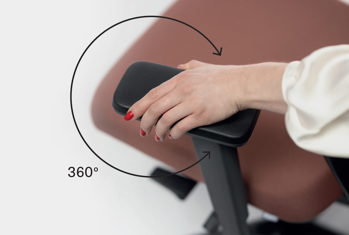 Multifunkční područky 4F stavitelné výškově, hloubkově, šířkově a s rotací 360°.