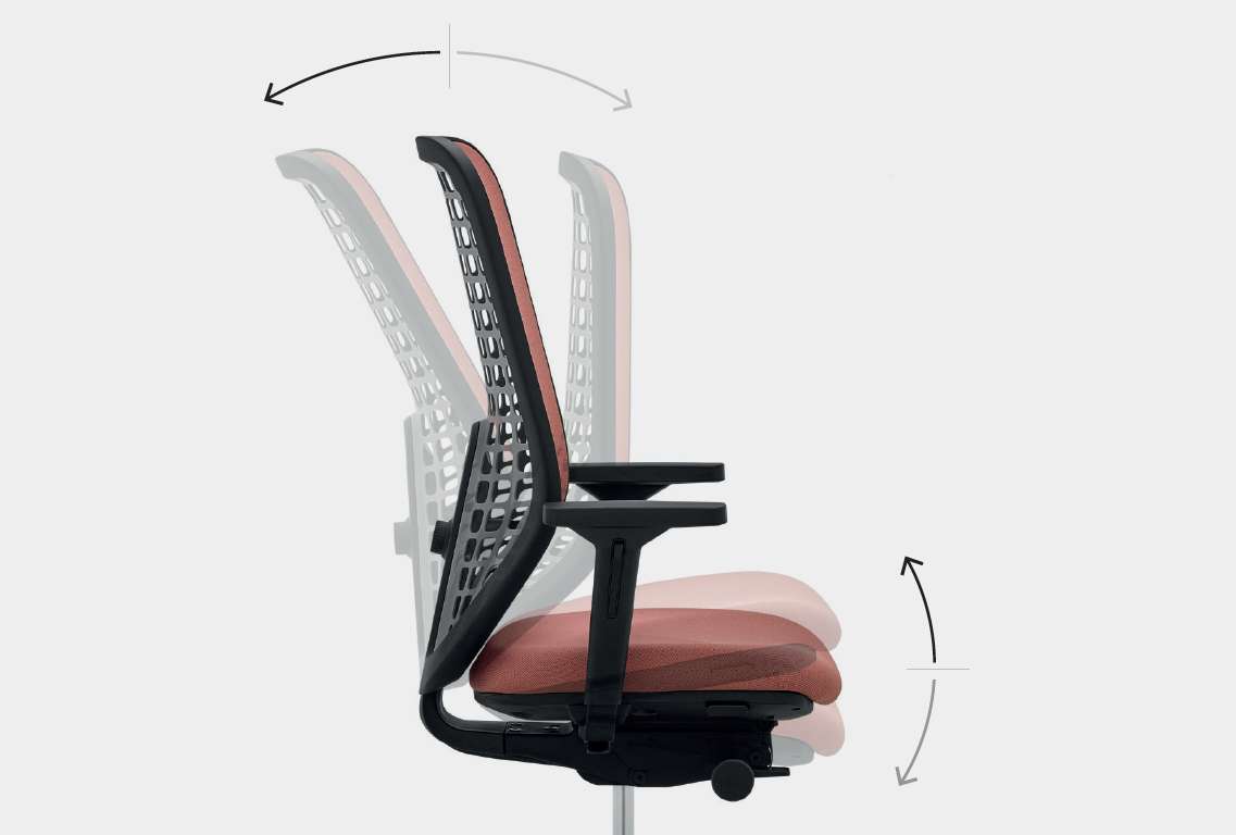 ST1 synchronní mechanika s aktivním náklonem sedáku společně s opěrou. Aretace ve 4 polohách. Posuv sedáku až 7 cm. Dostupné u SP 1501 a SP 1502.