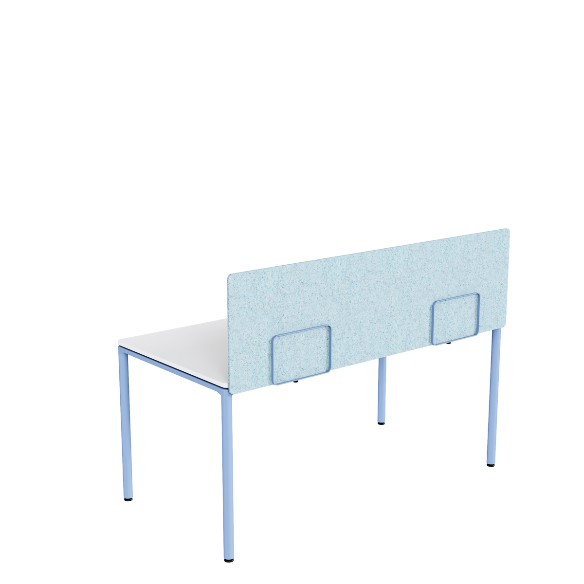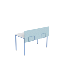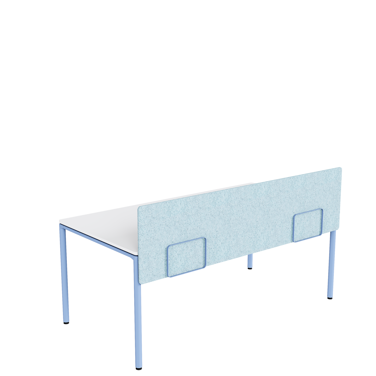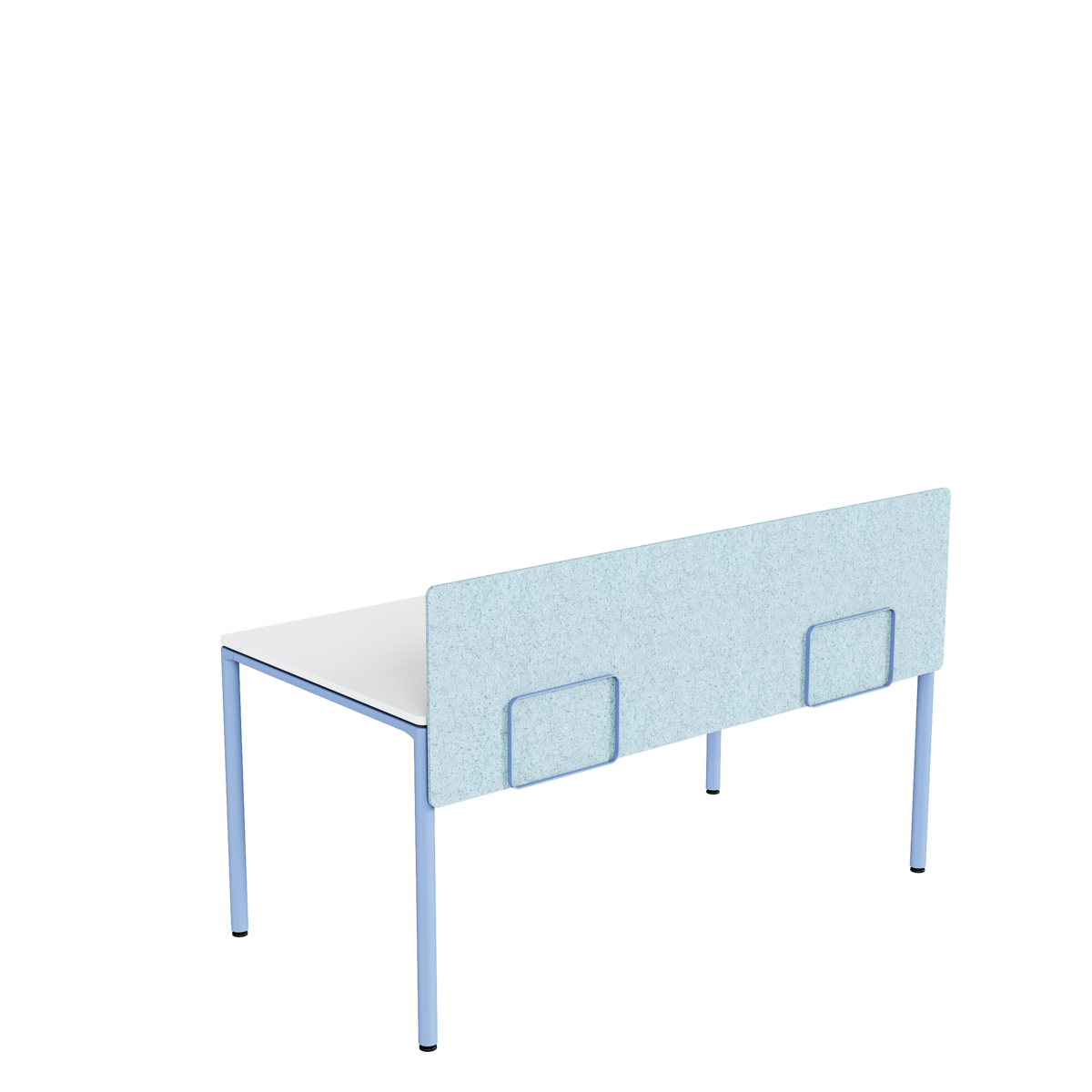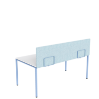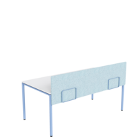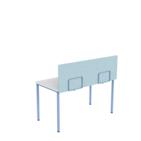 Stolové panely Zonio lze namontovat na čelní stranu stolu s uchycením nad nebo pod stolovou deskou. Zajišťují vizuální oddělení pracovních míst, podporují soukromí při práci a přispívají ke zlepšení akustického komfortu.