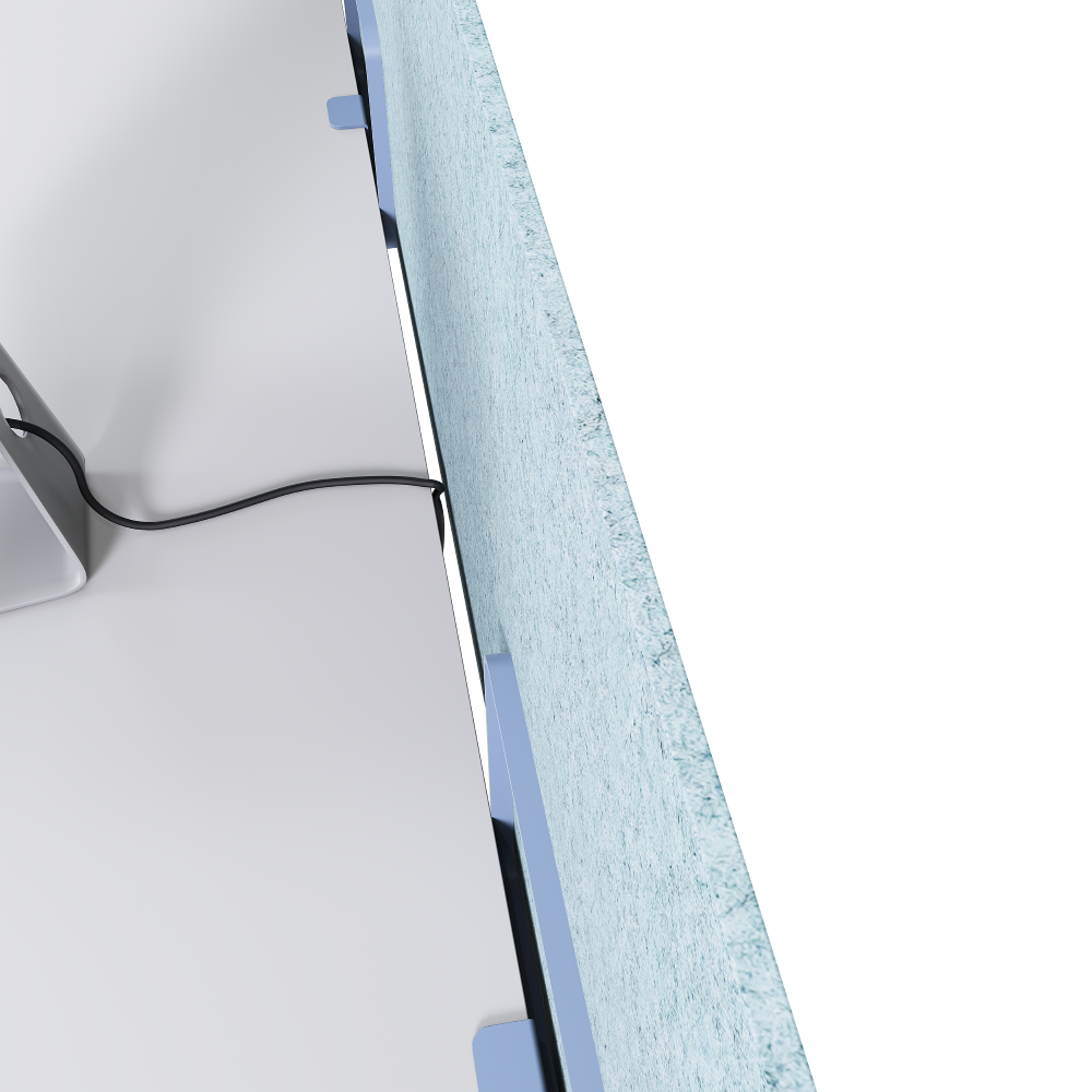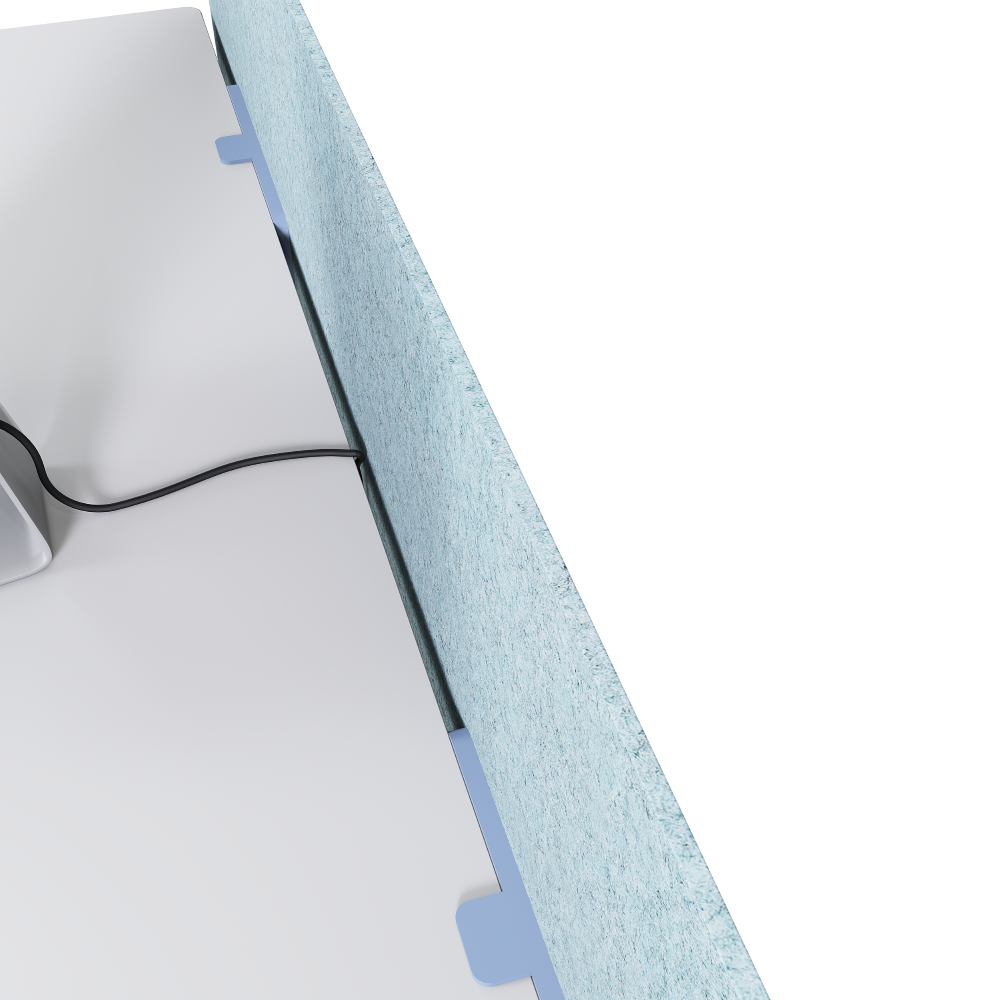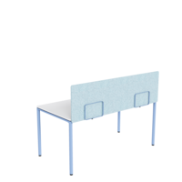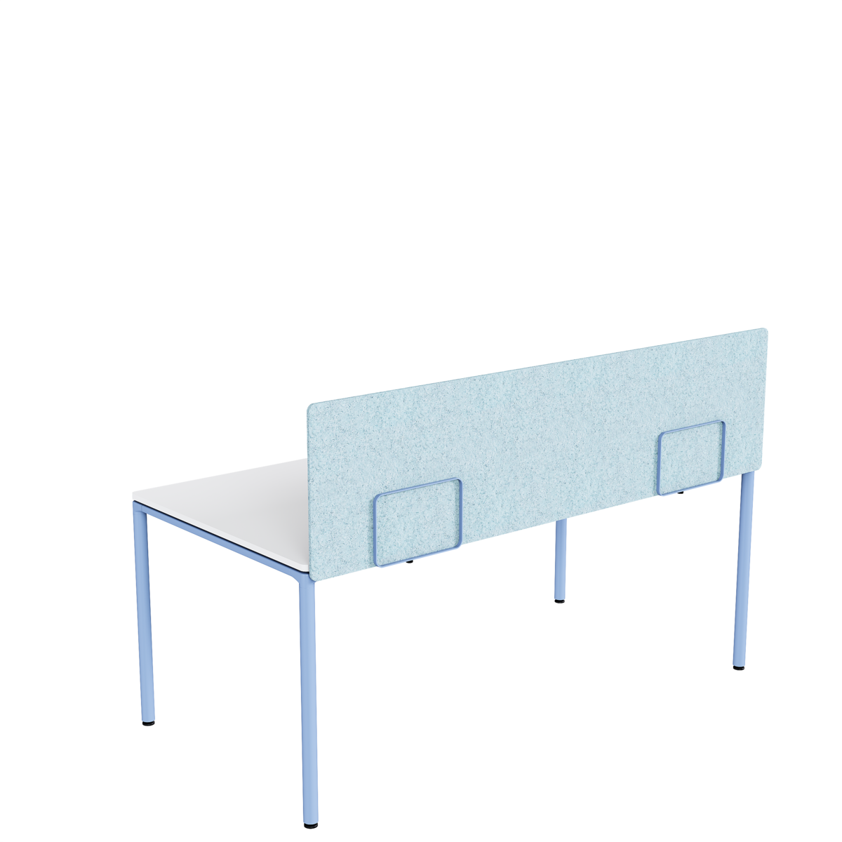 Stolové panely Zonio lze namontovat na čelní stranu stolu s uchycením nad nebo pod stolovou deskou. Zajišťují vizuální oddělení pracovních míst, podporují soukromí při práci a přispívají ke zlepšení akustického komfortu.