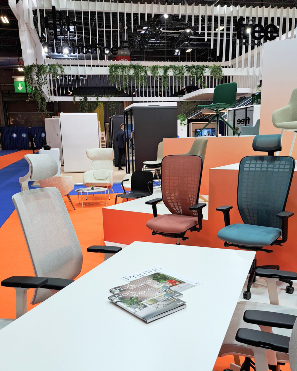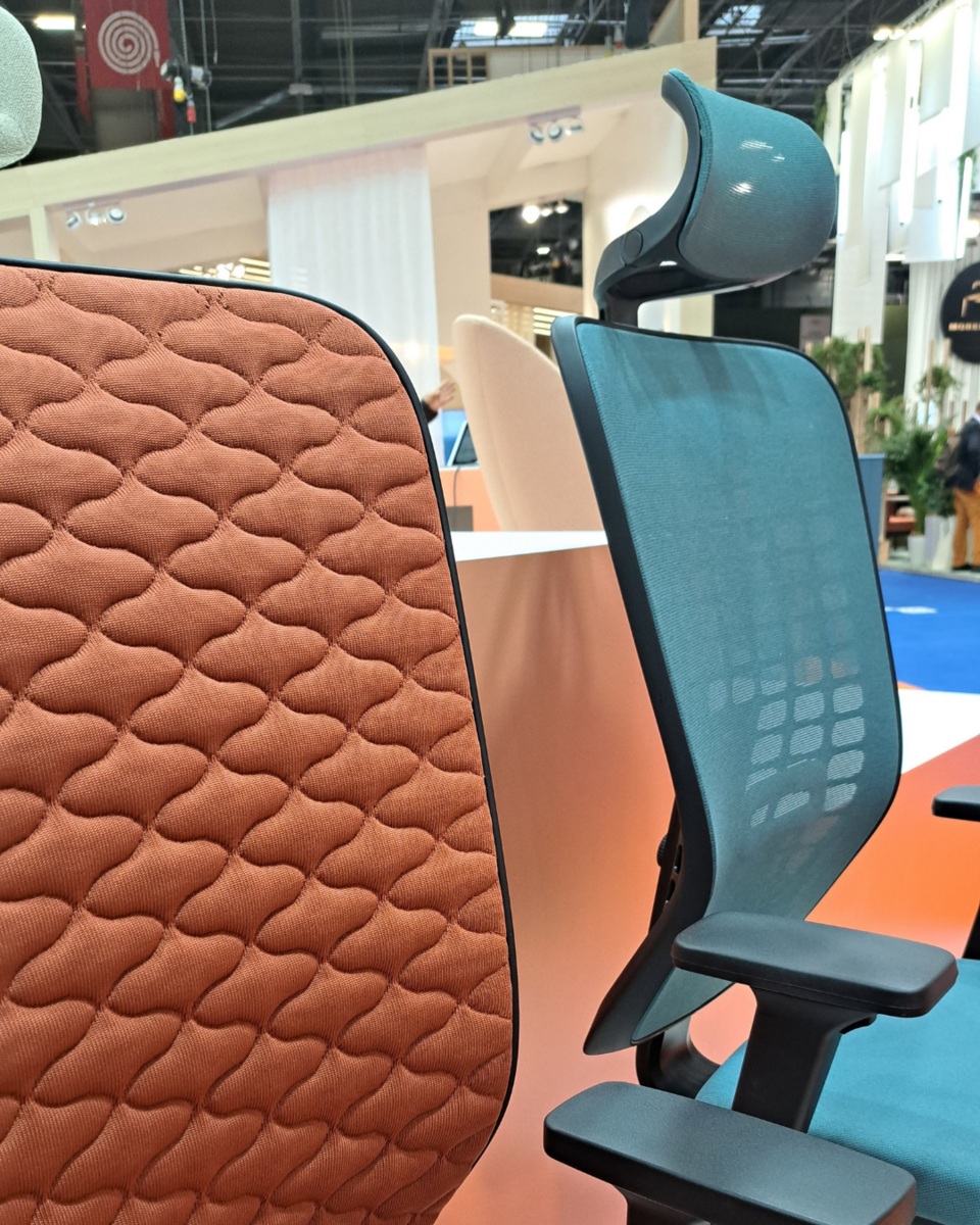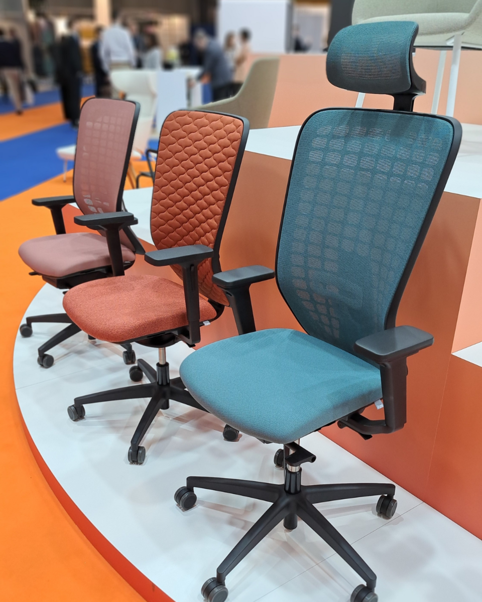 Další novinky nabídla kolekce prémiové otočné židle Space. Nejvíce zaujal nový model SP 1523, na kterém jsme také poprvé představili variantu čalounění opěry v ekologické 3D tkanině. Oblíbený model SP 1522 s 3D mechanikou jsme představili v konfiguraci s volitelným záhlavníkem. Na stánku jsme přivítali i samotného designéra Space – Robina Platta z Velké Británie.