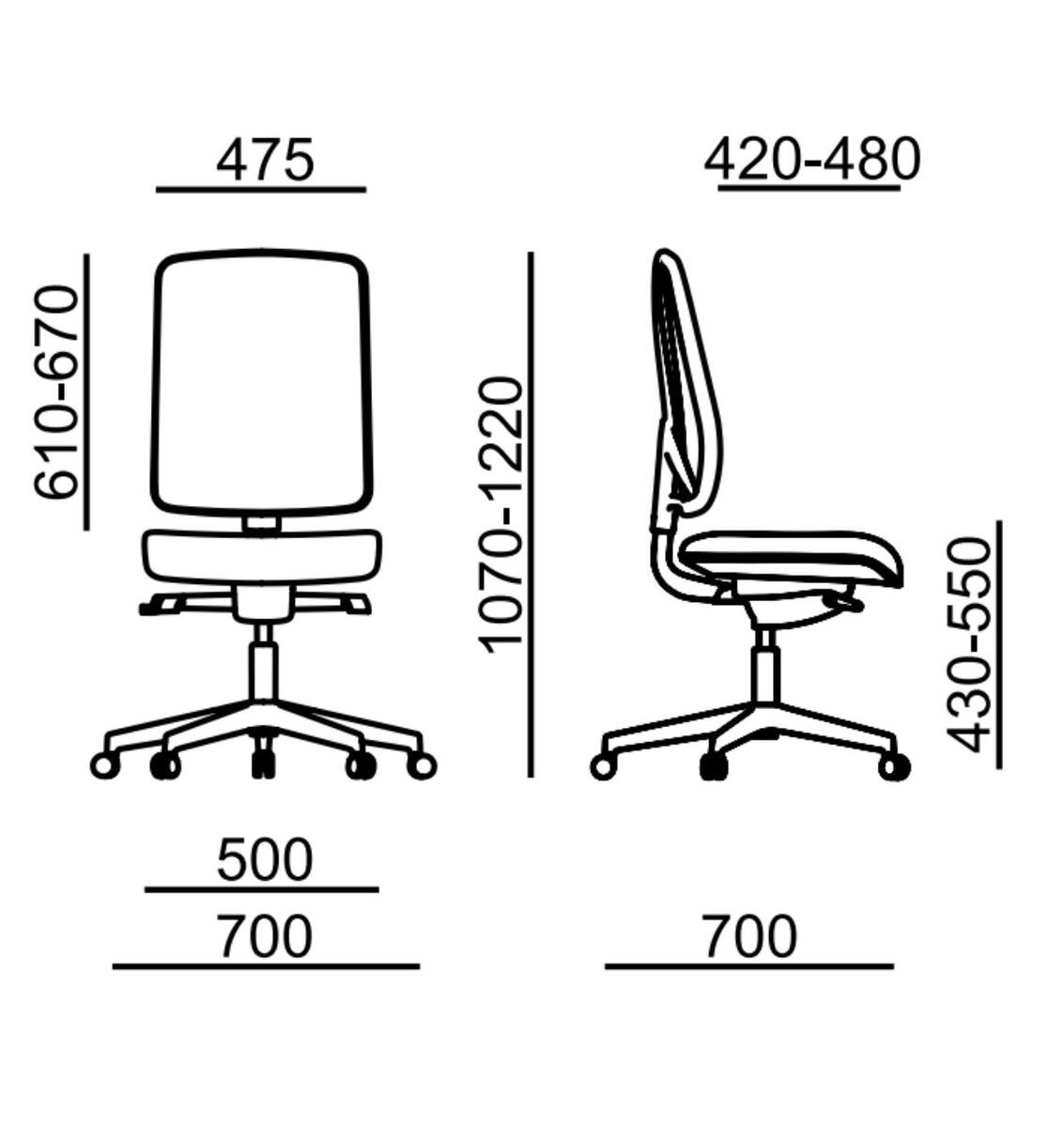 Der Stuhl ist mit einer ST1 Synchronmechanik für ein dynamisches Sitzen ausgestattet. Die Rückenlehne ist 60 mm höhenverstellbar mittels Easy-Touch-System.
