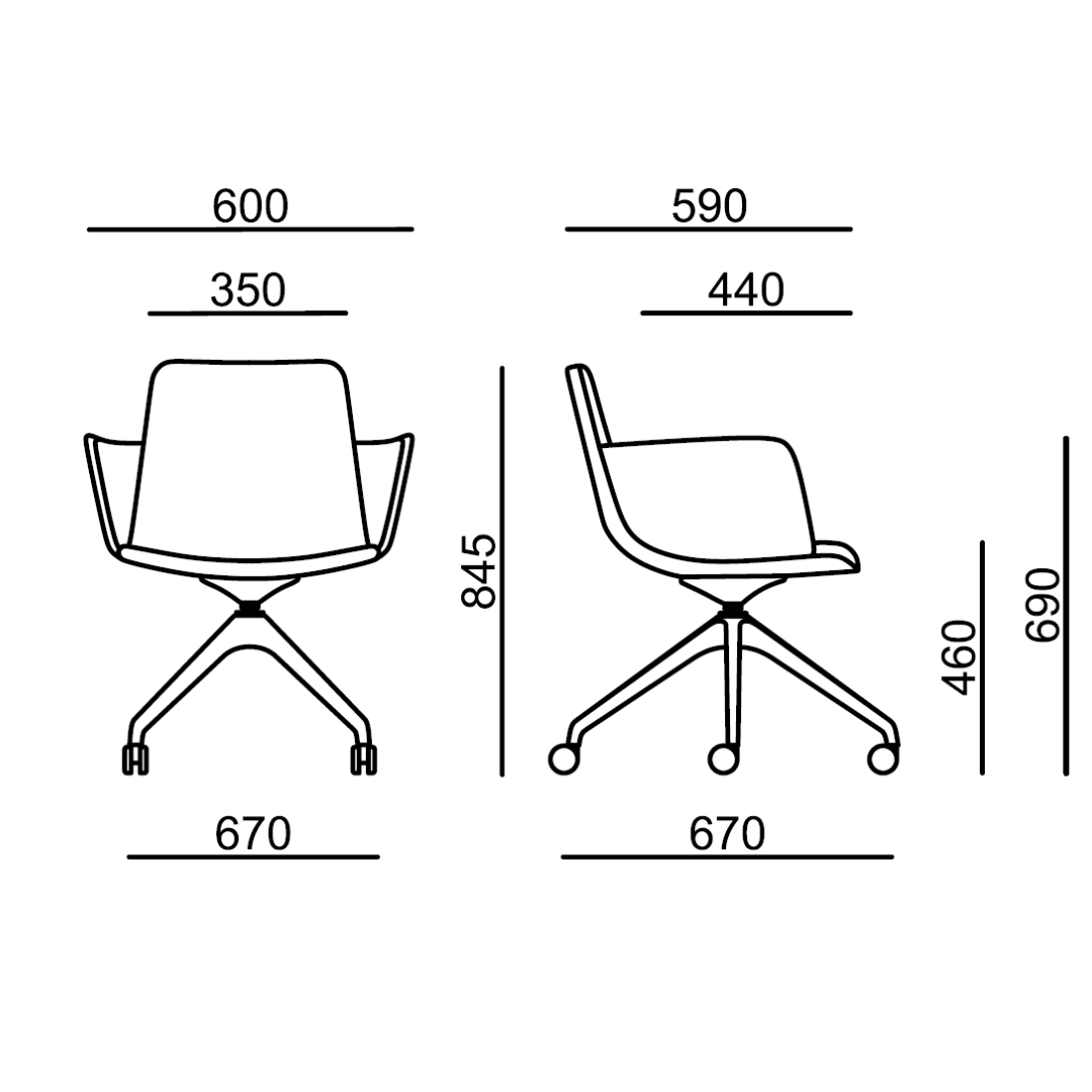 Das Modell ED 4202.18 mit drehbarer vierarmigen schwarzen Fußkreuz mit Rollen.