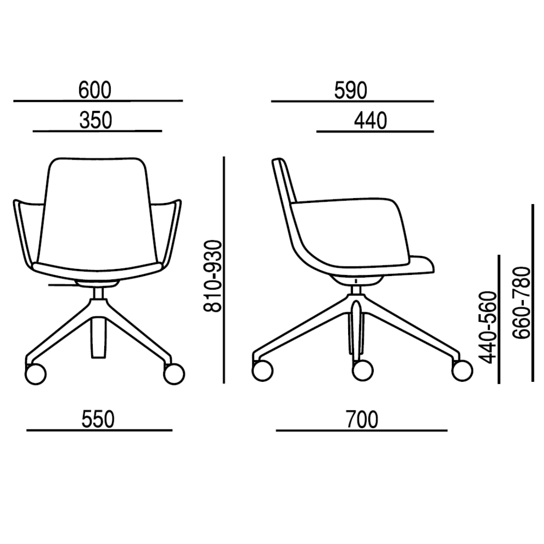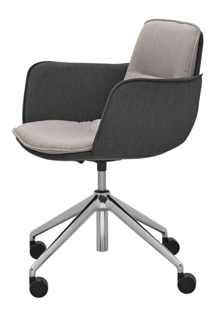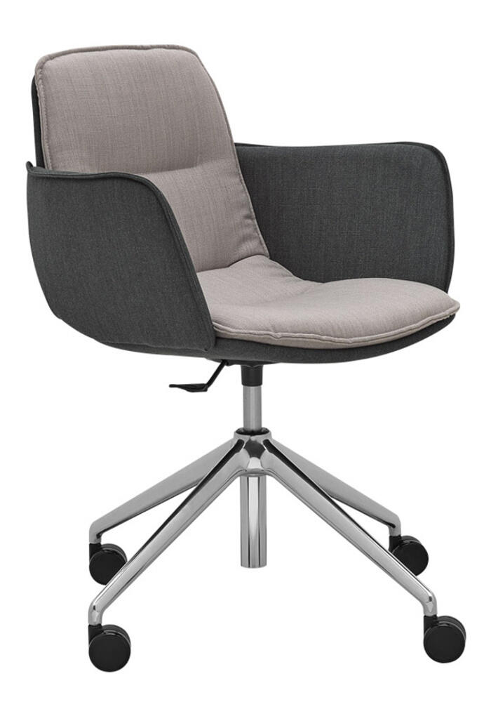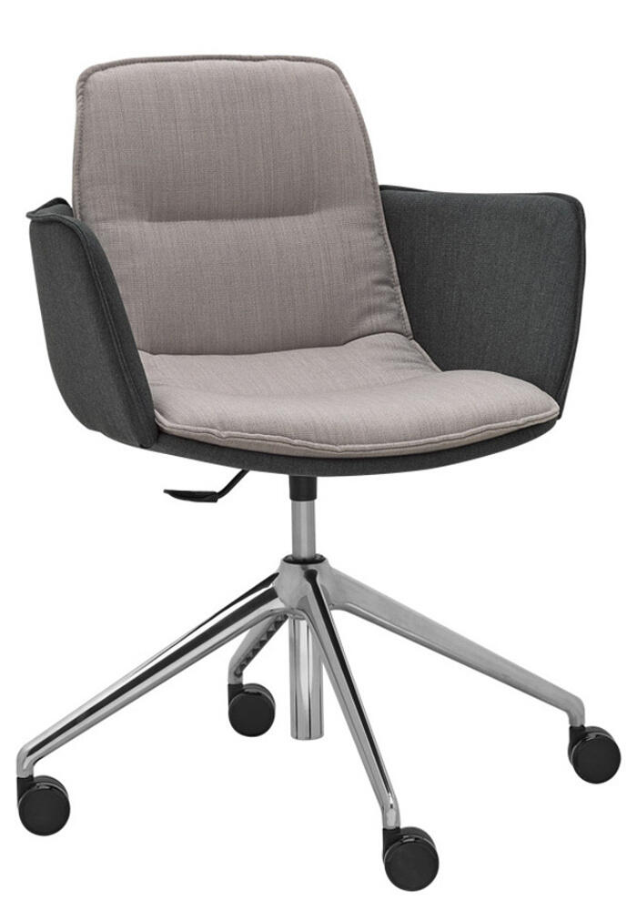 Das Modell ED 4202.04 mit 4-armiges Fußkreuz mit Rollen. Der Sessel ist mit einer Höhenverstellung ausgestattet.