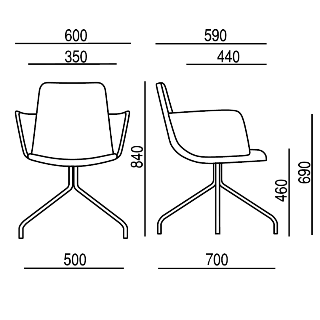 Schwarzes, drehbares vierarmiges Metallgestell aus konischen Rohren. Fixer Höhe