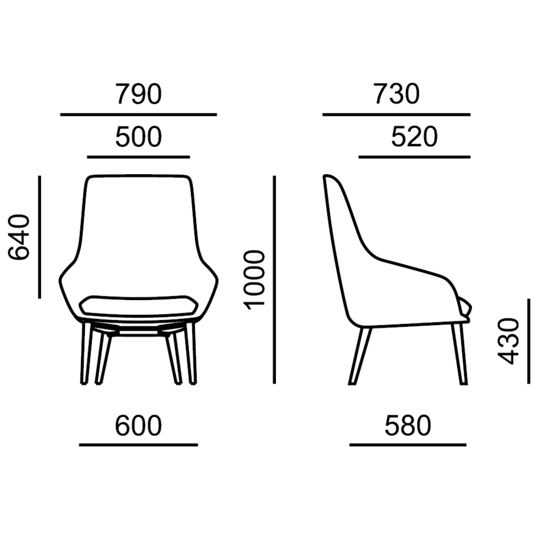 Lounge-Sessel KL 5306.17 mit hoher Rückenlehne auf einem vierbeinigen Holzgestell.