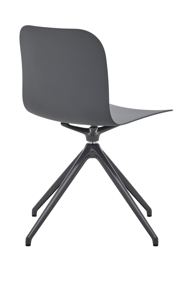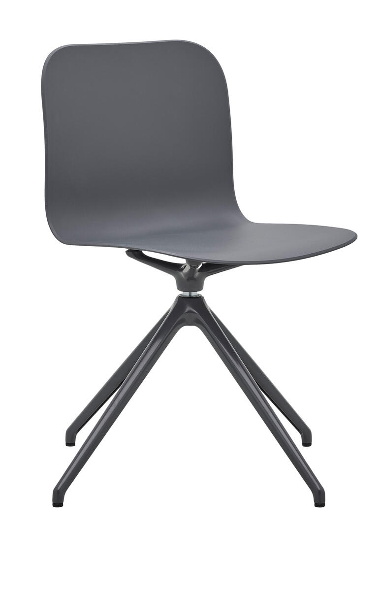 Ein Mehrzweckstuhl, Sitz und Rückenlehne Kunststoff, auf einem drehbaren Gestell.