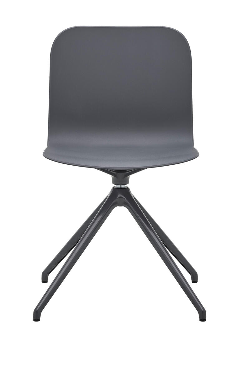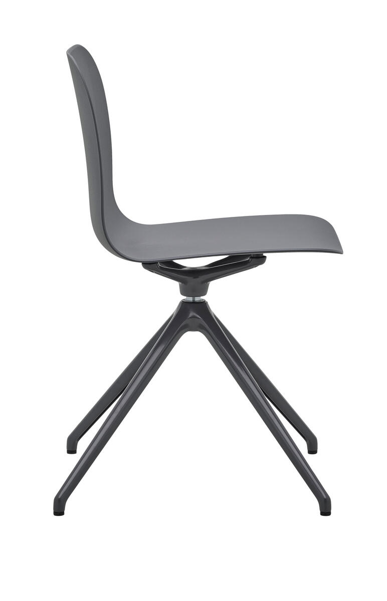Vierarmiges Aluminiumfußgestell mit Kunststoffgleitern. Drehbar, nicht höhenverstellbar. Die Standardausführung der Aluminiumteile ist schwarz, gegen Aufpreis können sie in einer Pulverfarbe nach Wahl lackiert werden.