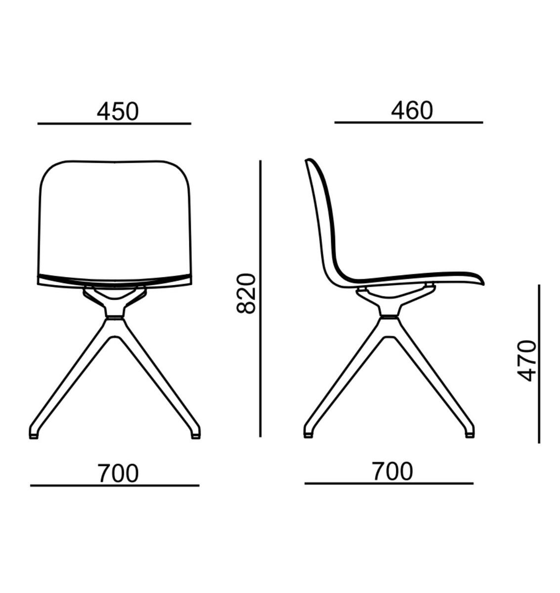 Lambda ist ein Mehrzweckstuhl, der in Kombination mit einem geeigneten Gestell in der Lage ist, einen Konferenzsaal, ein Café oder ein gemütliches Homeoffice auszustatten.