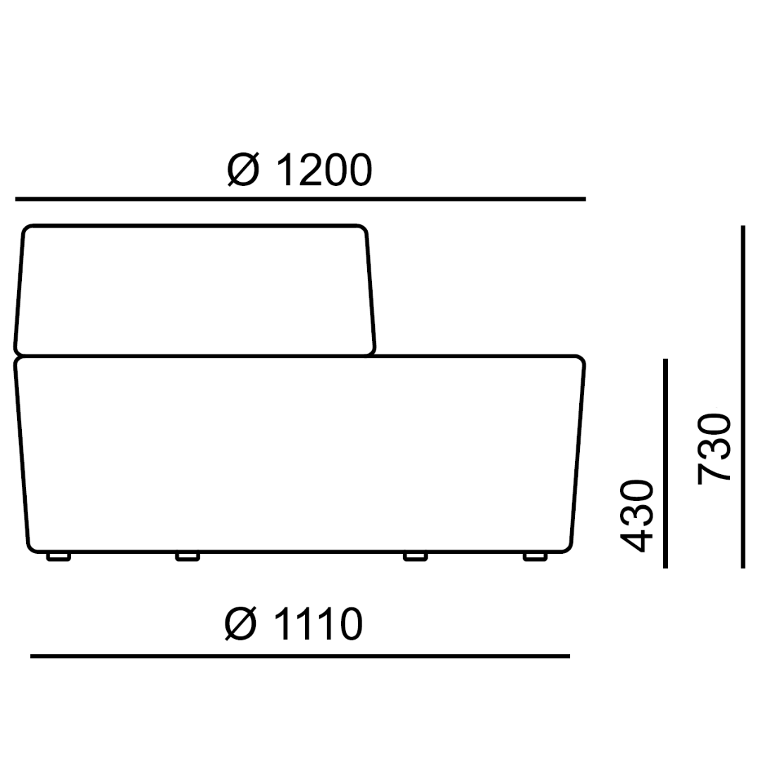 Niedriger runder Hoker STONES Ø 1200 mm mit teilender Stütze.