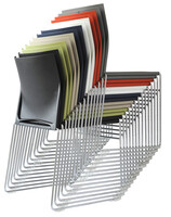 Kunststoffstuhl (PP) auf einem dünnen Kufen Gestell. Ein modernes und leicht wirkendes Design, welches ein hochwertiges und bequemes Sitzen garantiert. Der Stuhl ist für öffentliche Räume mit multifunktionaler Nutzung geeignet. Er erfüllt hohe Ansprüche beim Stapeln (bis zu 45 Stück auf einem Transportwagen). Kunststofffarben – schwarz und weiß. Erweiterte Kunststofffarben – blau, rot, grün, Sand und grau. Optional mit Schreibtablar, Griffloch oder Reihenverbindern.