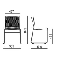 Kunststoffstuhl (PP) auf einem dünnen Kufen Gestell mit Netz-Rückenlehne. Ein modernes und leicht wirkendes Design, welches ein hochwertiges und bequemes Sitzen garantiert. Der Stuhl ist für öffentliche Räume mit multifunktionaler Nutzung geeignet. Er erfüllt hohe Ansprüche beim Stapeln (bis zu 45 Stück auf einem Transportwagen). Kunststofffarben – schwarz und weiß. Erweiterte Kunststofffarben – blau, rot, grün, Sand und grau. Optional mit Schreibtablar, Griffloch, Reihenverbindern oder Paniksicherung.