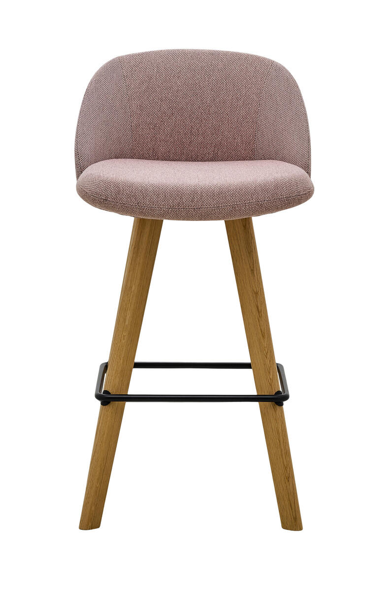 Vollgepolsterter Barhocker WX 882.25 in Küchenhöhe mit Holzgestell aus massivem Eichen- oder Eschenholz. Metallfußstütze in schwarzer oder verchromter Ausführung.