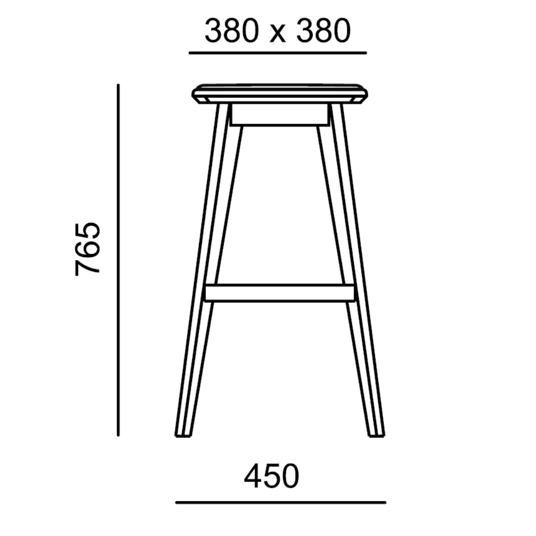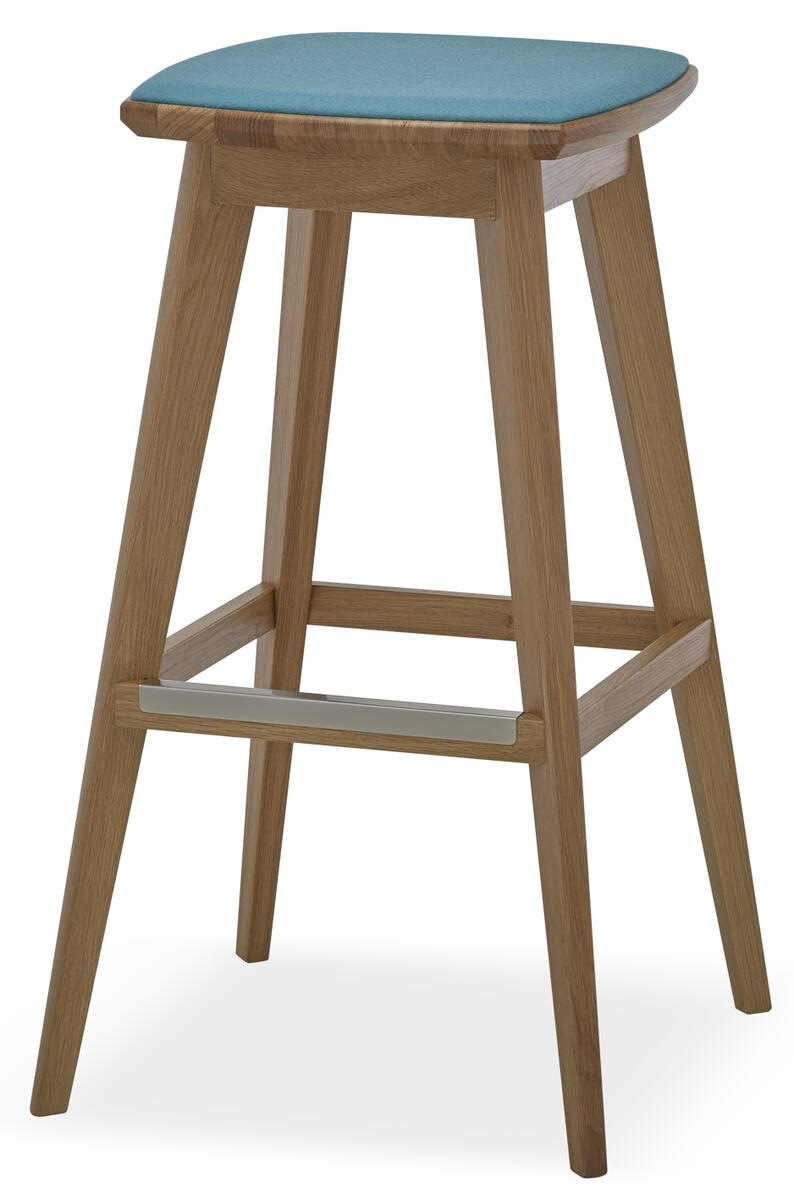 Holz-Barhocker mit gepolstertem Sitzkissen.