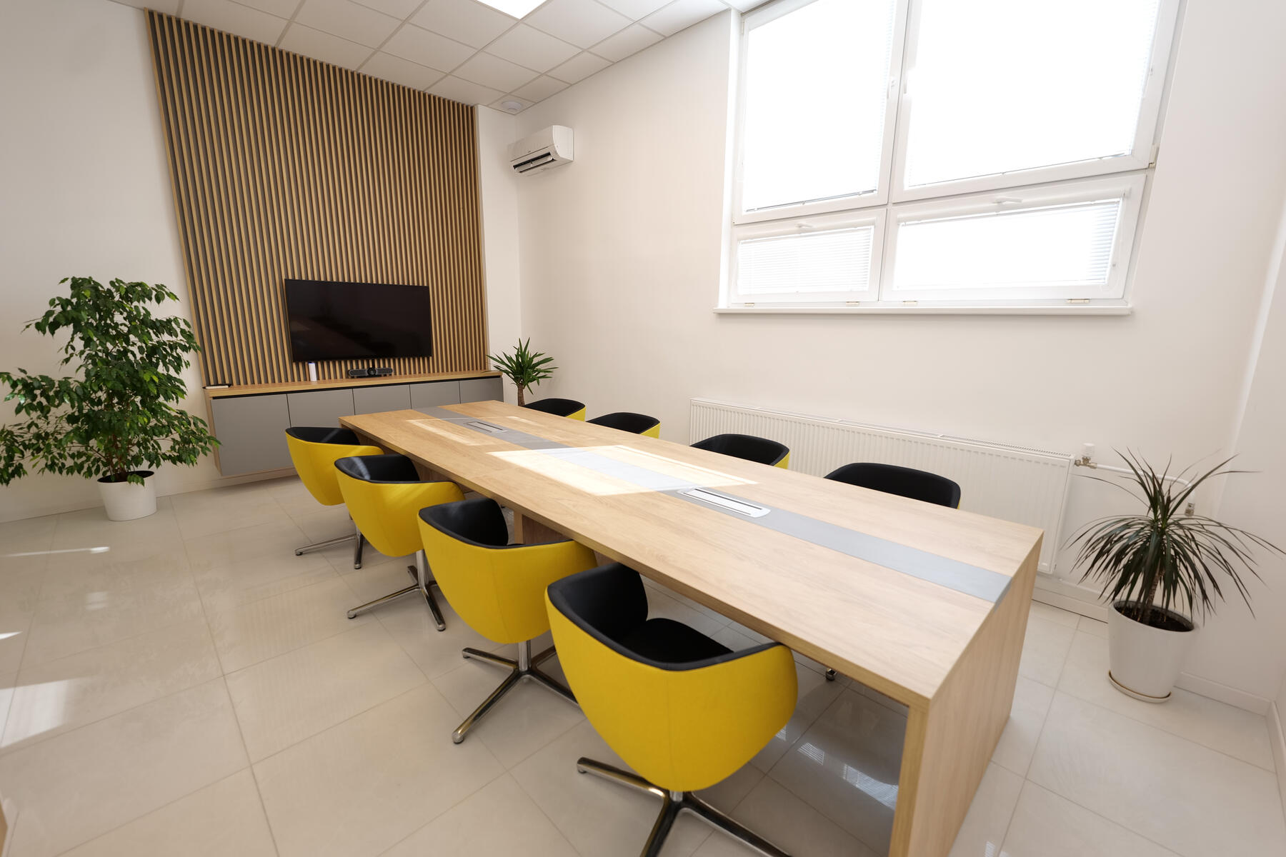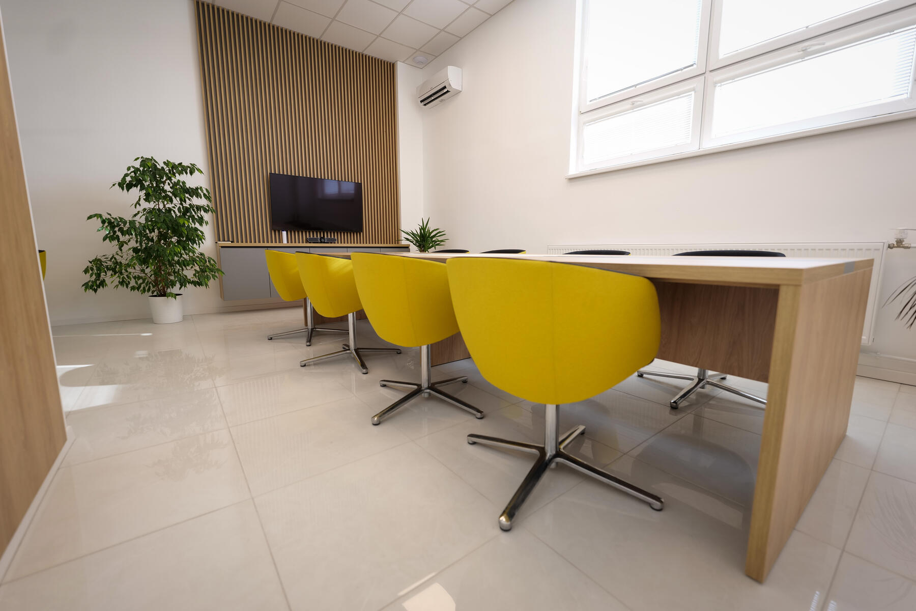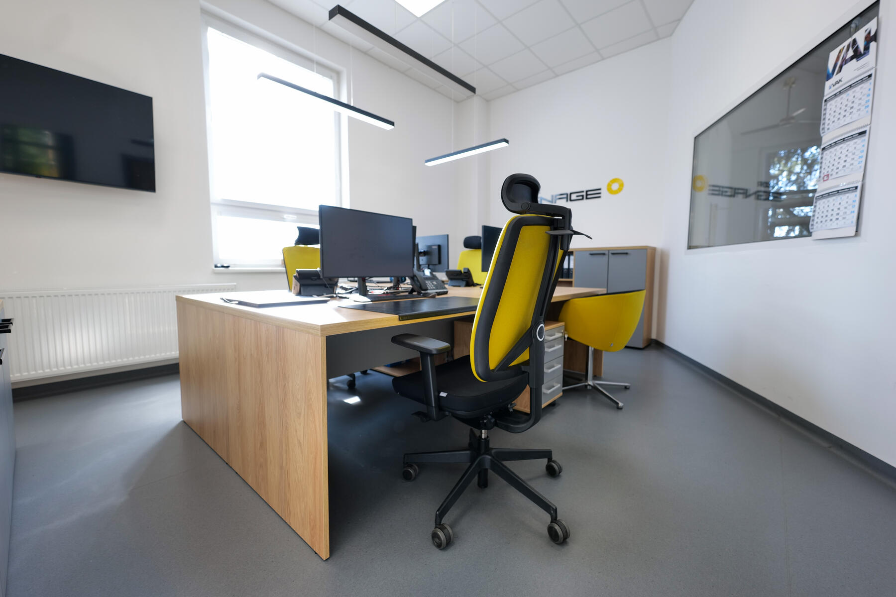 Die Büros, der Besprechungsraum und die Teeküche strahlen in lebendigen Gelbtönen, die die Unternehmensidentität widerspiegeln und den kreativen sowie teamorientierten Geist unterstreichen. Unsere Winx-Sessel und Flexi-Bürostühle bieten höchsten Komfort und Stil für beste Arbeitsergebnisse.