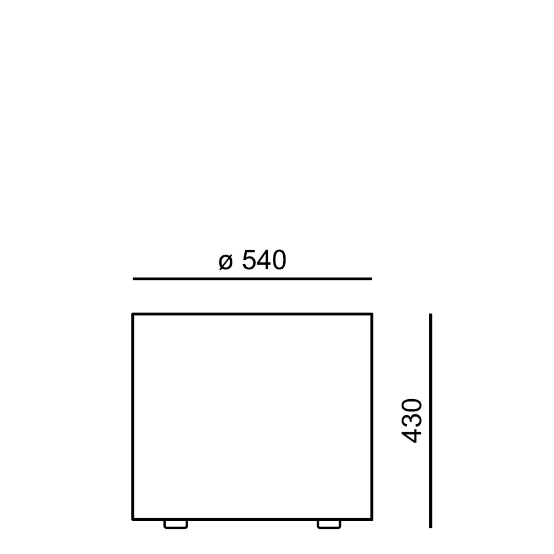 Vollgepolsterter Sitzhocker runder Form auf Kunststoffgleitern. Der Sitzhockerdurchmesser 540 mm.