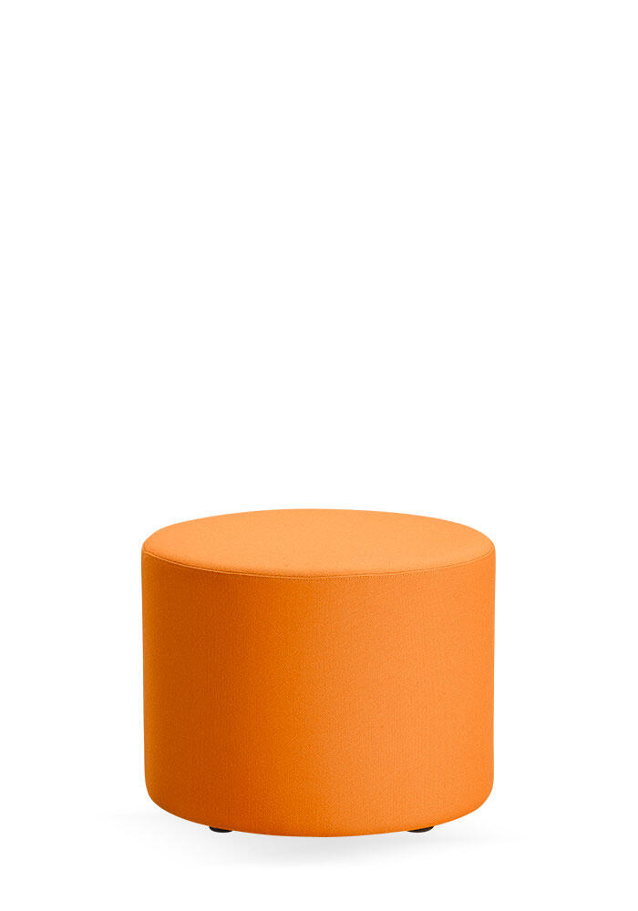 Vollgepolsterter Sitzhocker runder Form auf Kunststoffgleitern. Spielerisches Sitzen für die Ruhezonen.
