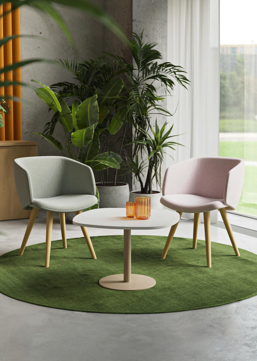 Die Tische Vitalo machen das Erlebnis am hohen, niedrigeren und noch niedrigeren Bein angenehmer. Diese allseitige Kollektion von Tischen auf einem zentralen Gestell kommt allen Bedürfnissen der Benutzer entgegen und eignet sich für ein jedes Interieur.