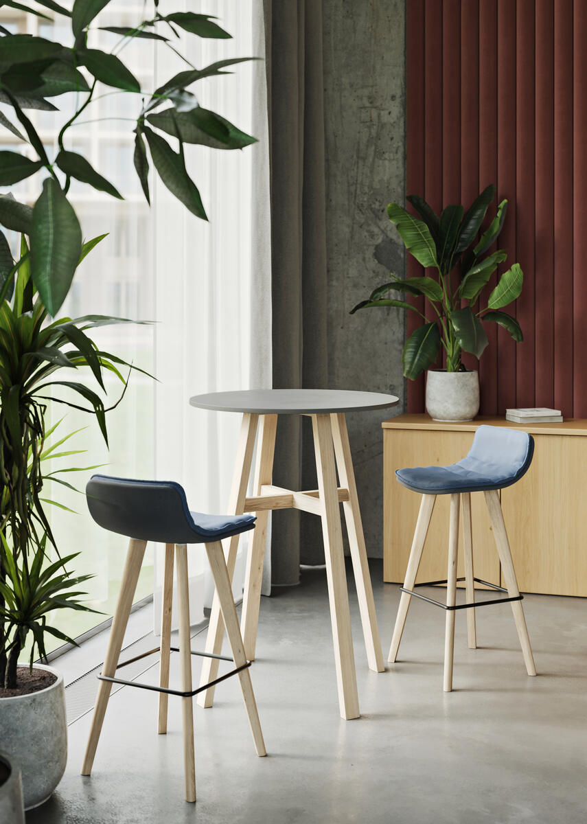 Lightweight round table top on high oak or ash tree solid wood base. Table CO 5625 is a great option for informal workspaces and also coffee shops and restaurants.