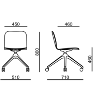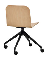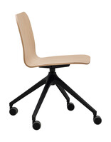 Multipurpose chair, beech wood shell, black swivel four-star base with castors.