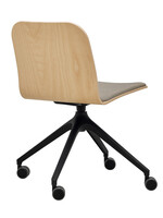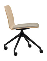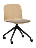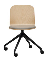 Multipurpose chair, beech wood shell with upholstered seat segment, black swivel four-star base with castors.