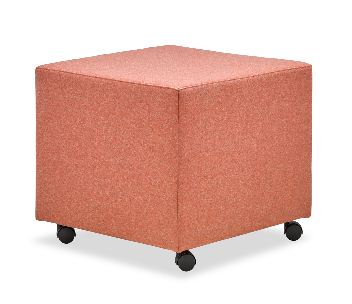 Fully-upholstered cube tabouret on castors.