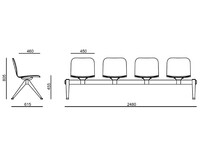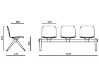 A two-, three- or four-seater bench with a modern design from the multifunctional Lambda collection, suitable for public spaces and waiting areas. Available with a fully plastic shell or with an upholstered seat segment.