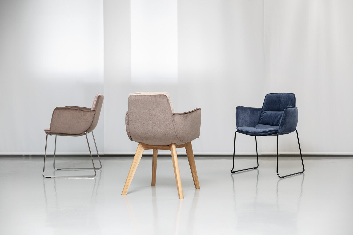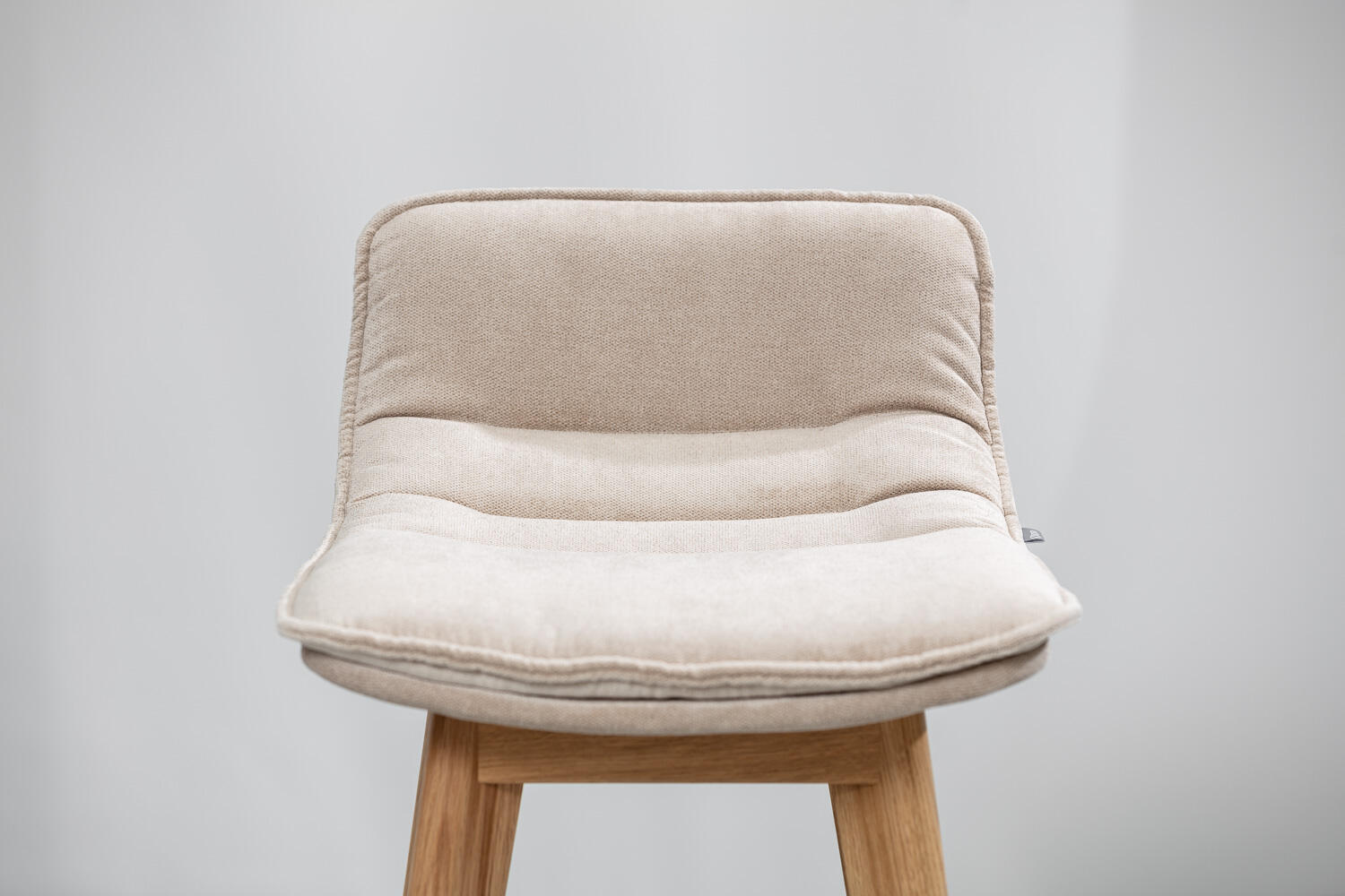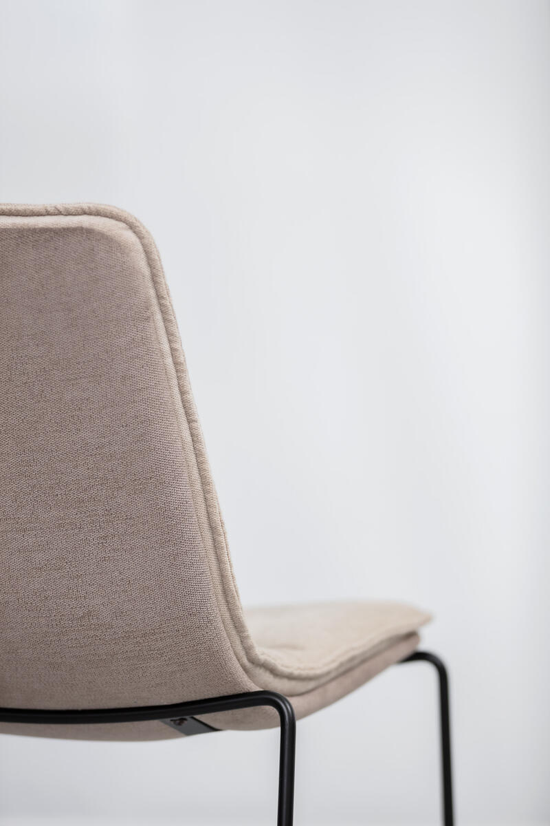 Playfully undulated upholstery makes the two-piece shell, each upholstered of its own, stand out.