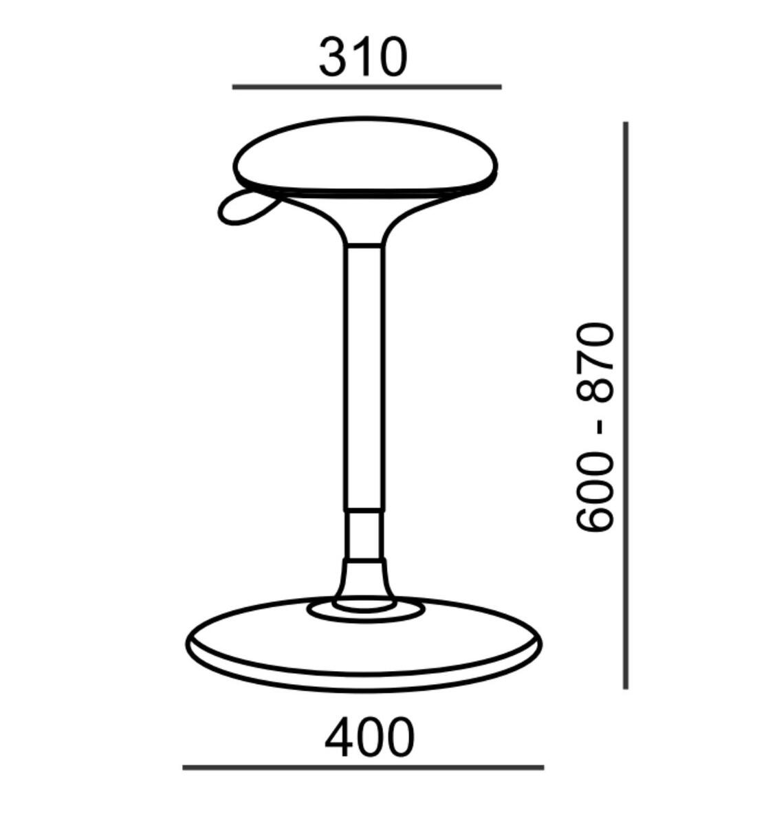 Balance stool Bello is suitable as a complement for height-adjustable tables and other high workdesks. Height adjustment 600–870 mm. 360° movements with side tilt up to 10°.