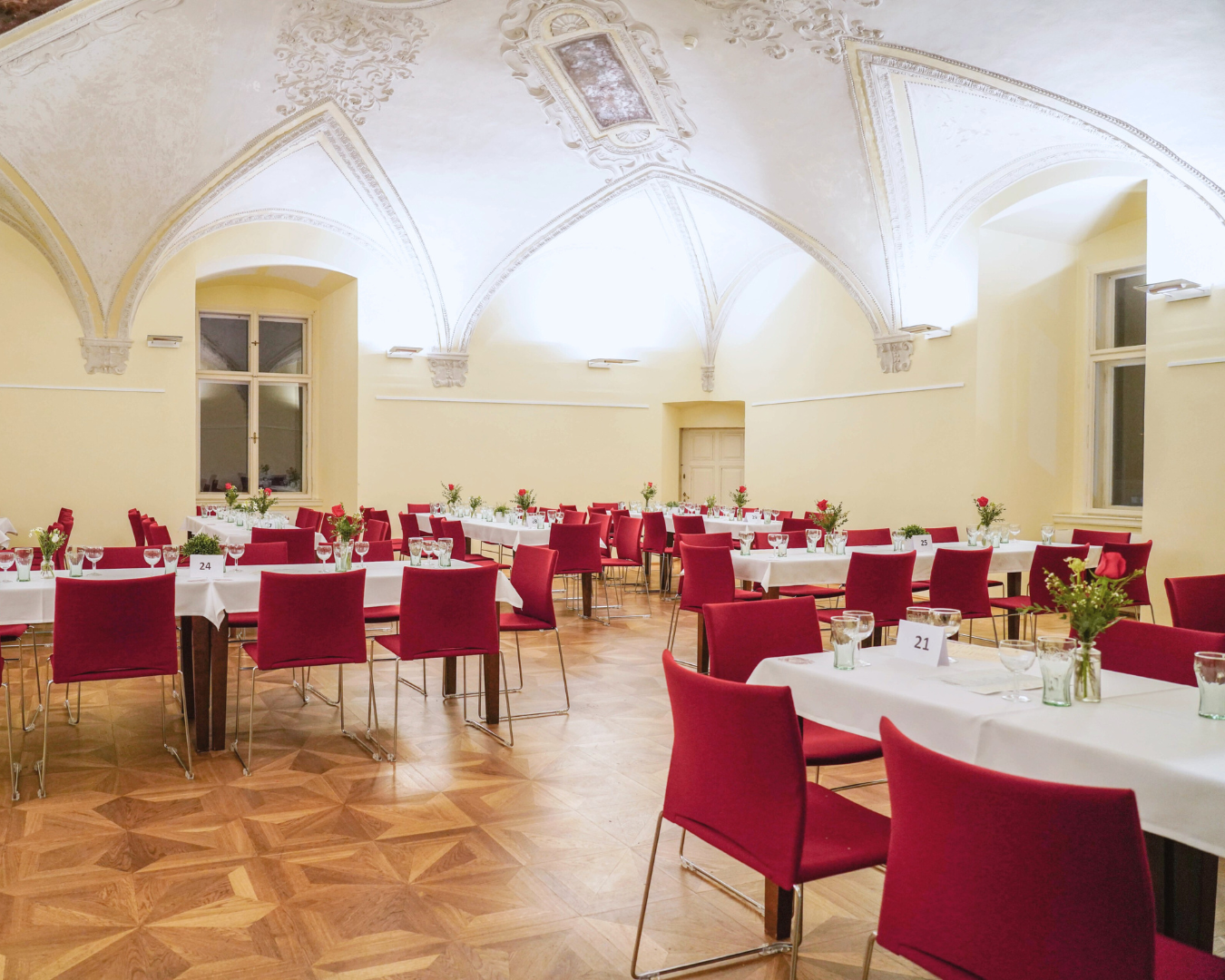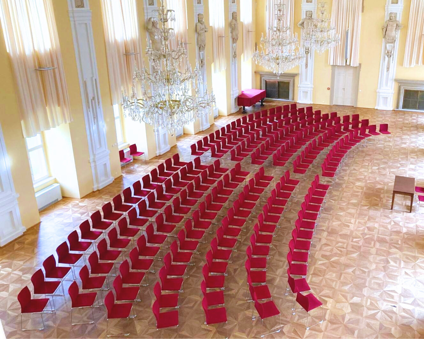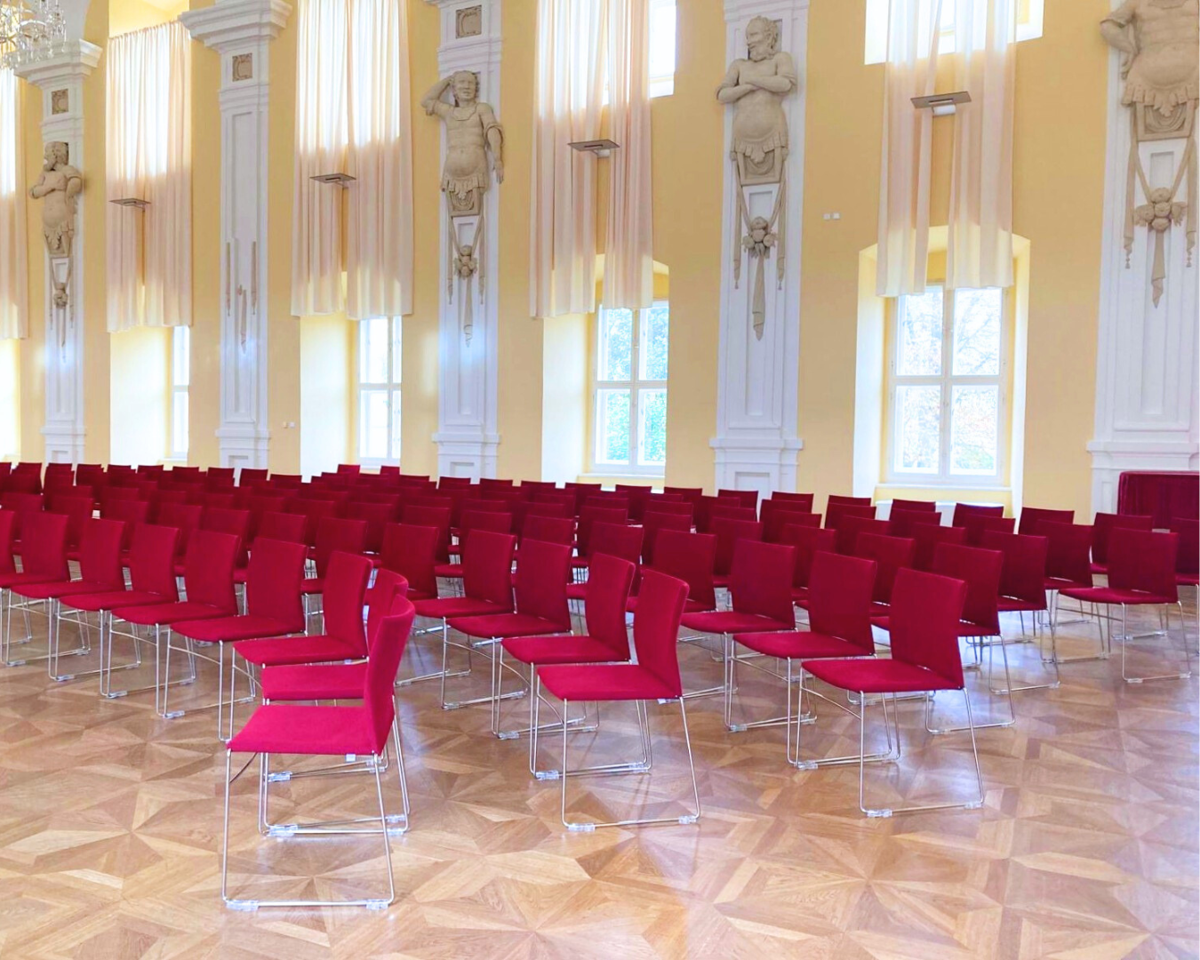The chairs were chosen by my predecessor, based on positive experience with them at the Zlín Congress Centre. Key criteria were comfort and aesthetics. The colour was also important — it needed to harmonise with the historical character of the hall.