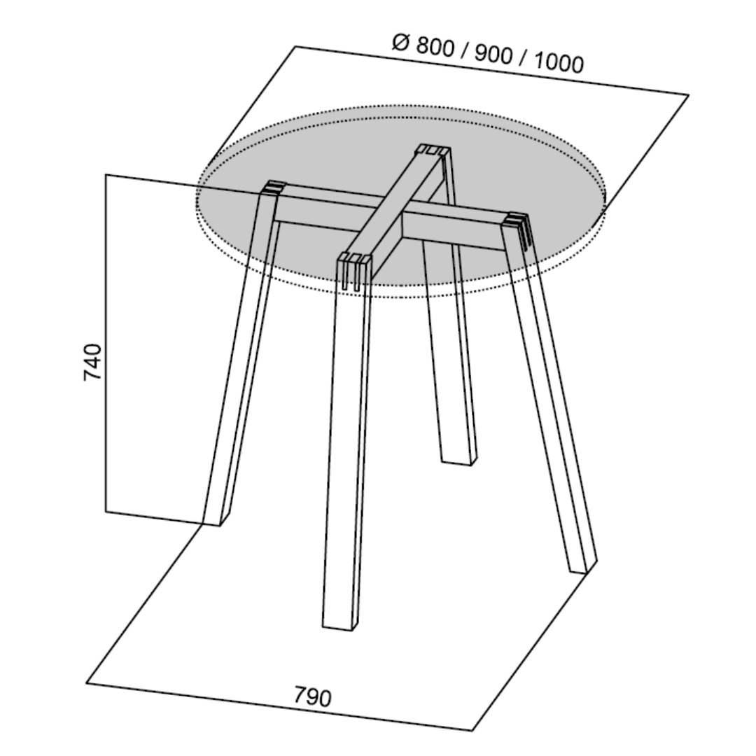 Pieds - bois massif de chêne ou frêne, finition huile cire dure
