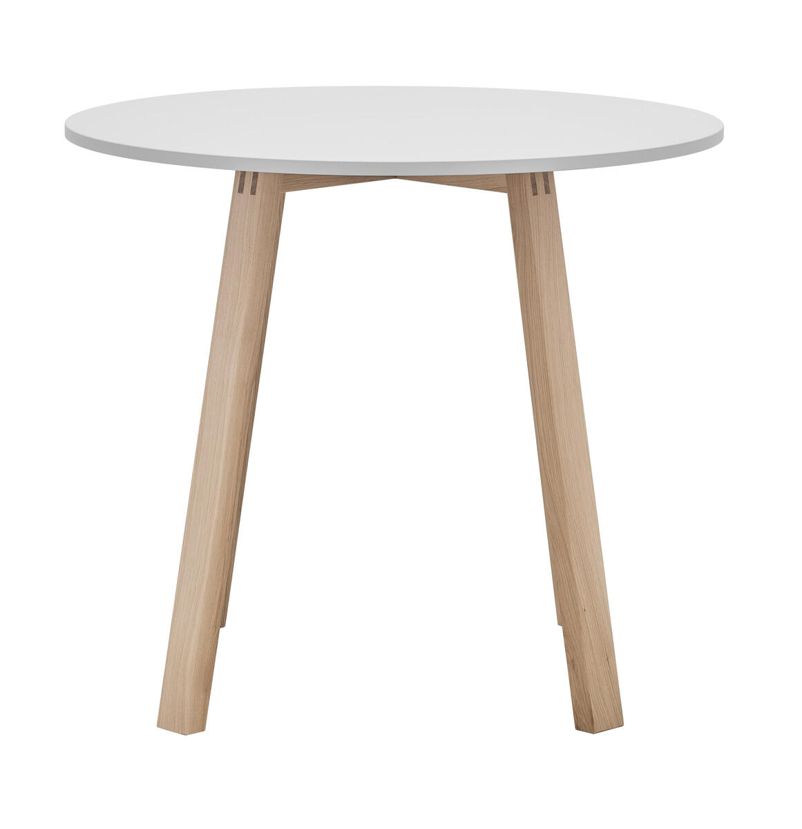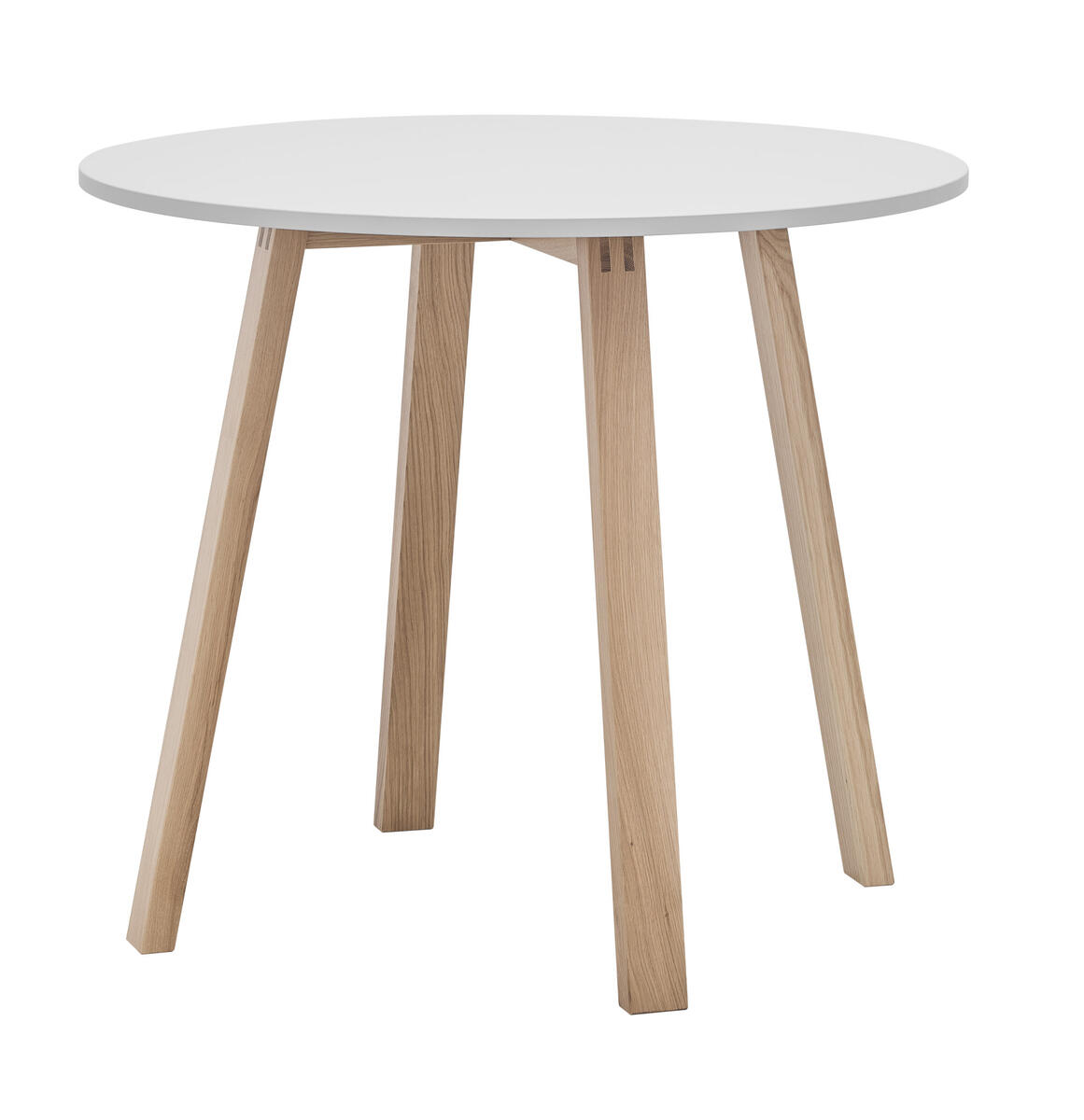Plateau de table rond léger sur une base en bois massif de chêne ou de frêne. La table CO 5626 est une excellente option pour les espaces de travail informels ainsi que pour les cafés et les restaurants.