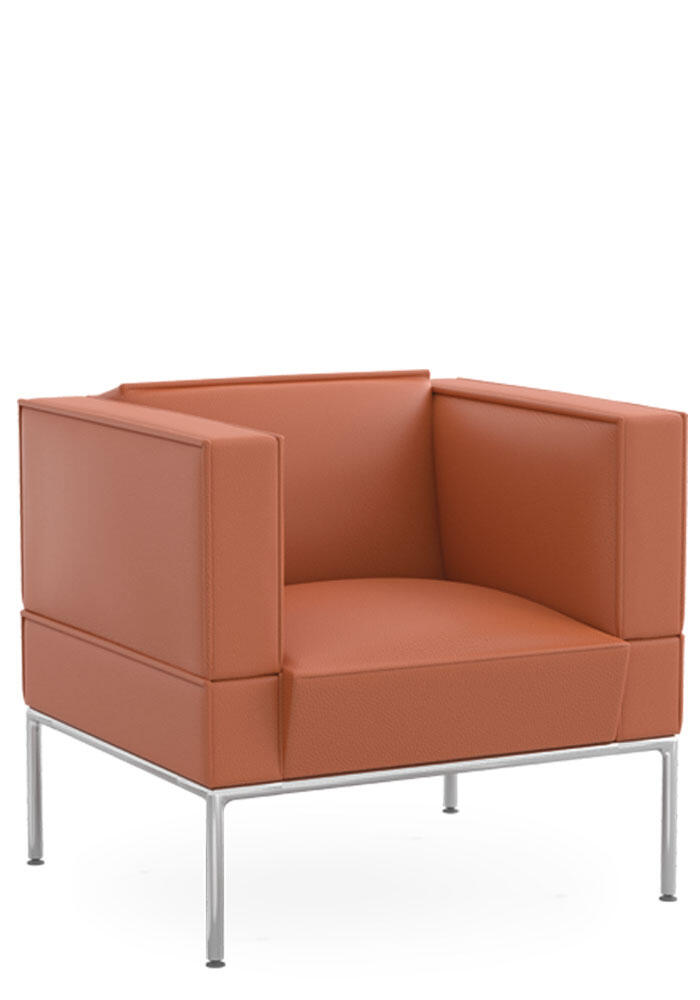 Le fauteuil 1 place realisé selon la conception du designer Kai Stania réunit les formes cubiques et organiques. Les ressorts ondulés et les chants du dossier adoucis garantissent des positions assises largement confortables. Ce fauteuil rentre dans la categorie exclusive grâce à ses détails de couture élégants, à sa structure chrome en tube et à sa possibilité de combiner les différentes variantes de capitonnages.