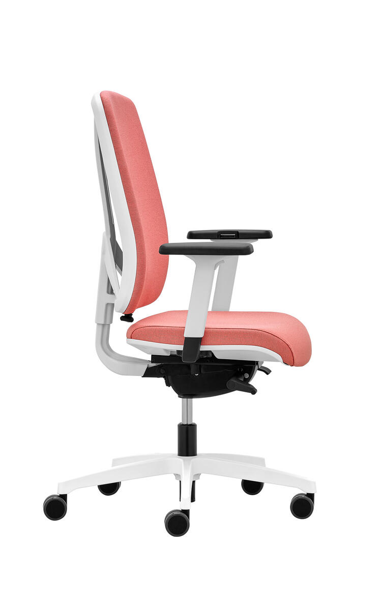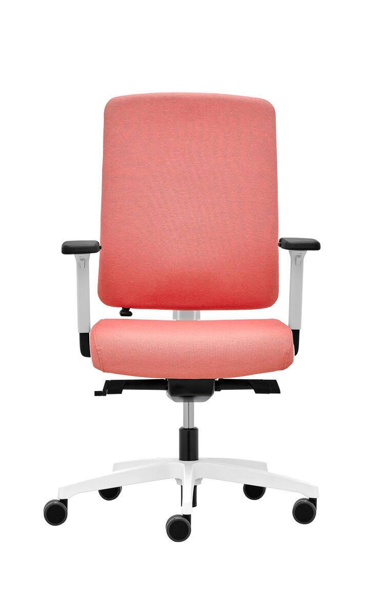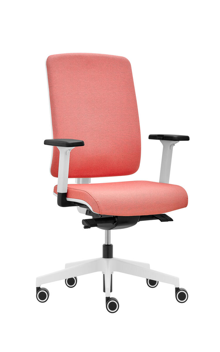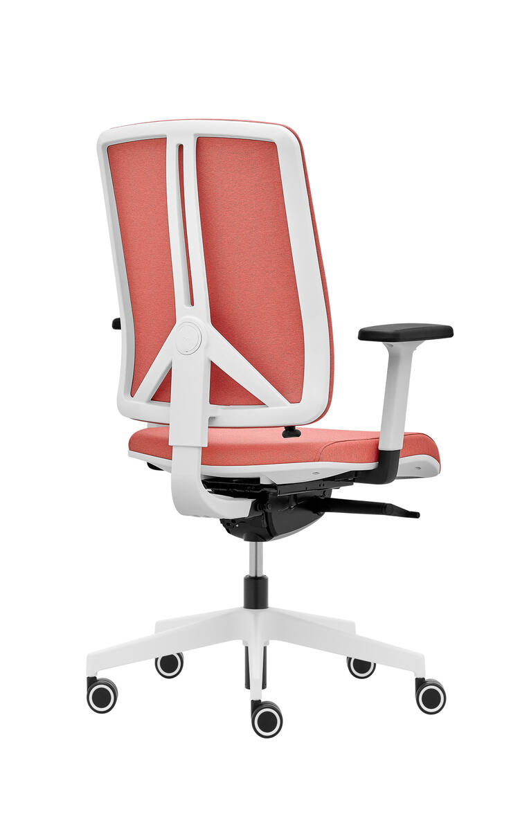 Siège de bureau moderne équipé d'une mécanique synchrone ST1 qui assure la position assise dynamique. Le dossier entièrement rembourré et réglable en hauteur (6 cm) se distingue par sa structure légère et son design de console centrale. Disponible avec réglage en profondeur optionnel du support lombaire (3 cm).
