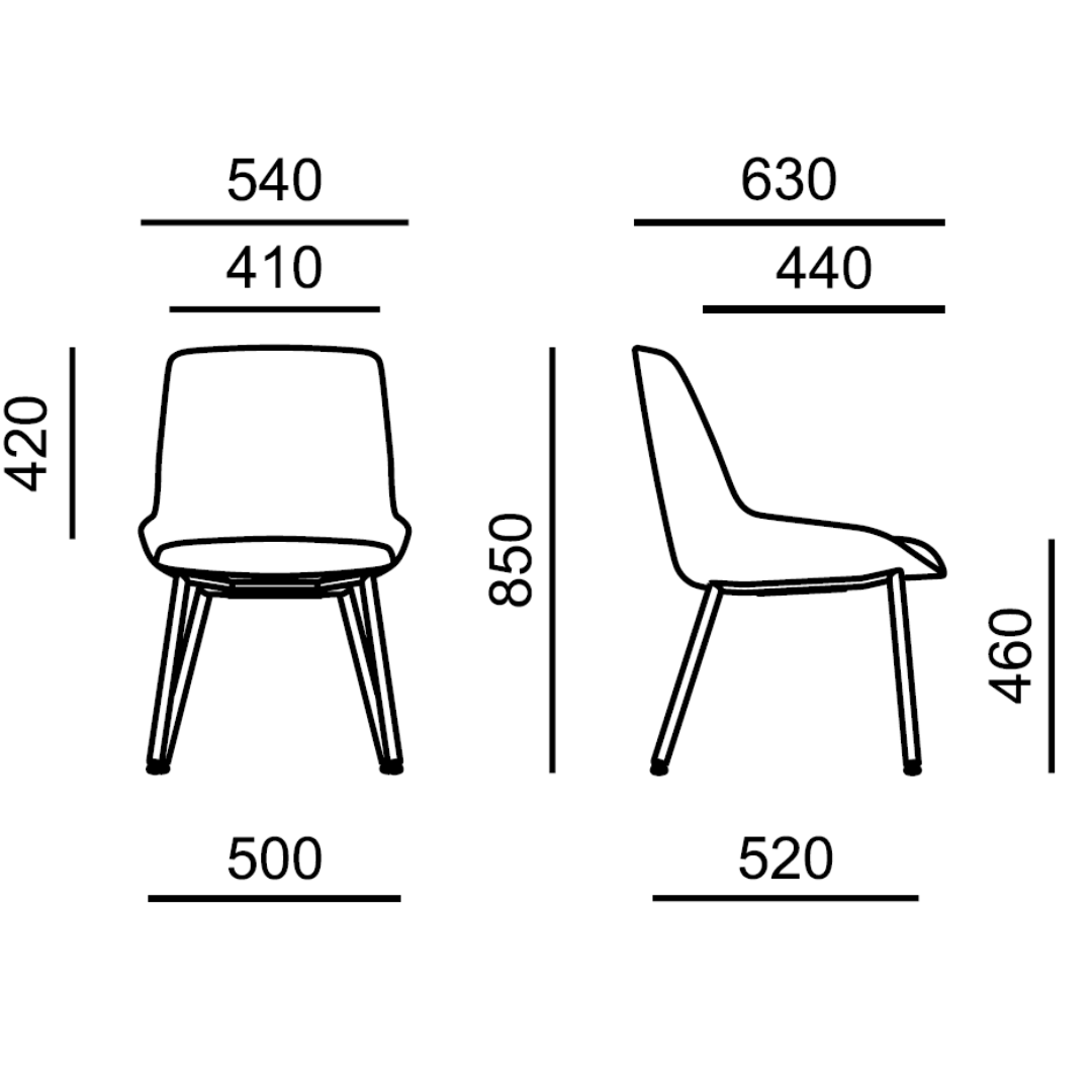 Chaise rembourrée KL 5301.09 sur un piètement à quatre pieds métallique.