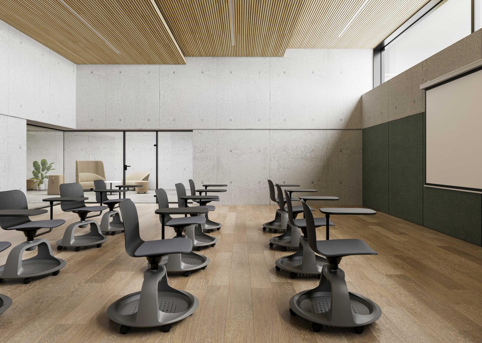Le modèle pivotant avec panier de rangement sur roulettes et tablette écritoire en option trouve sa place notamment dans les établissements éducatifs tels que les salles de classe scolaires et universitaires, les bibliothèques, les amphithéâtres et autres espaces d’apprentissage.
