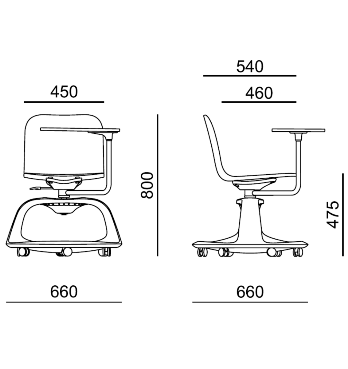 Le modèle pivotant avec panier de rangement sur roulettes et tablette écritoire en option trouve sa place notamment dans les établissements éducatifs tels que les salles de classe scolaires et universitaires, les bibliothèques, les amphithéâtres et autres espaces d’apprentissage.