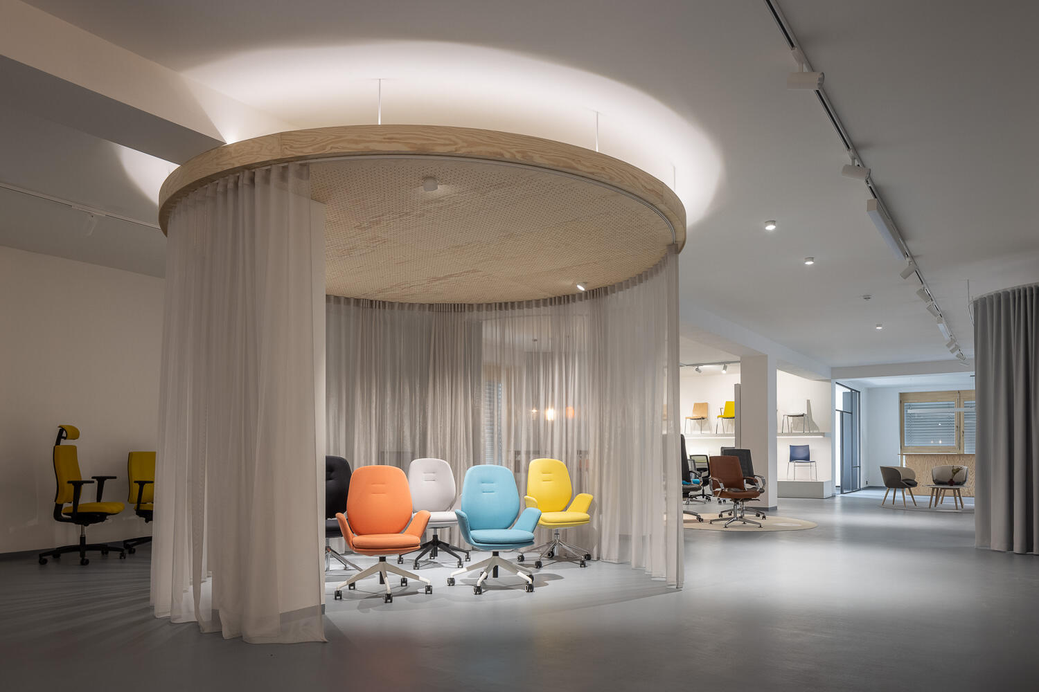 Comme pour les projets précédents dans le siège de la société, le studio Ellement architects de Zlín a une fois de plus pris en charge les travaux de construction récents. L'aspect final respecte le caractère original du bâtiment tout en ajoutant des éléments tendance qui aident notre société à représenter nos chaises, fauteuils et programme bois de manière digne et élégante.